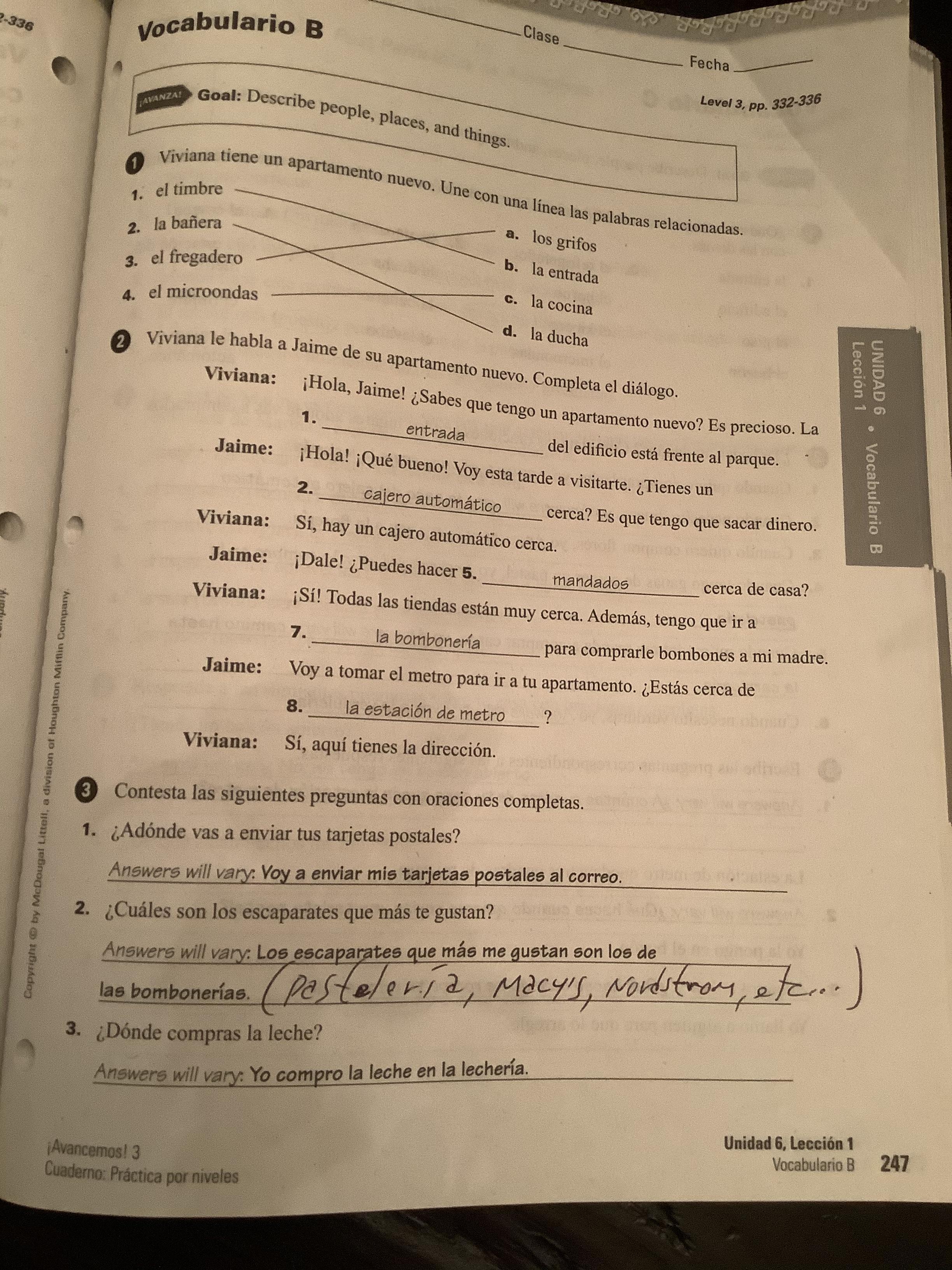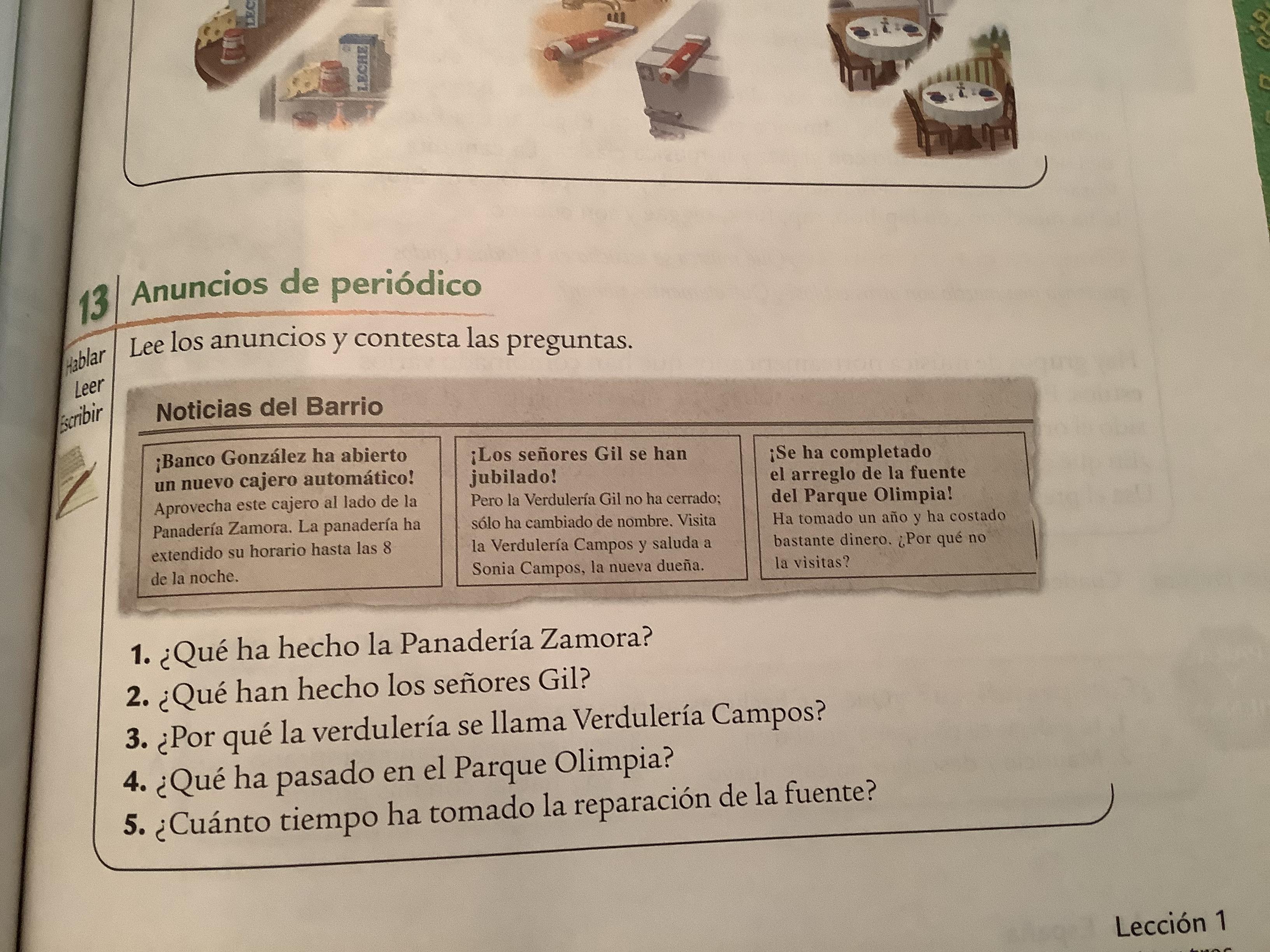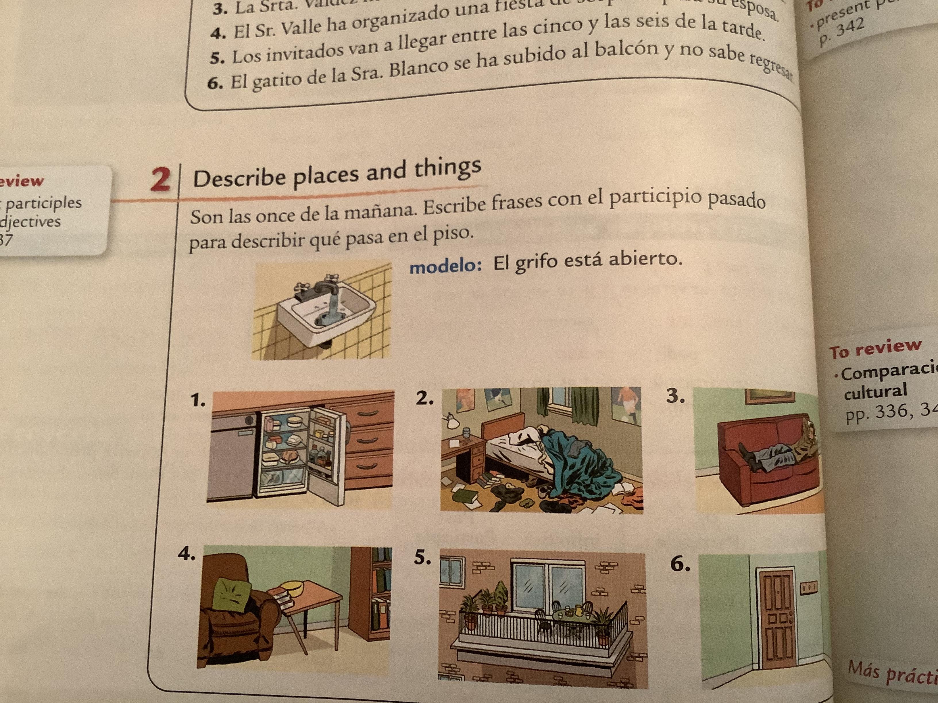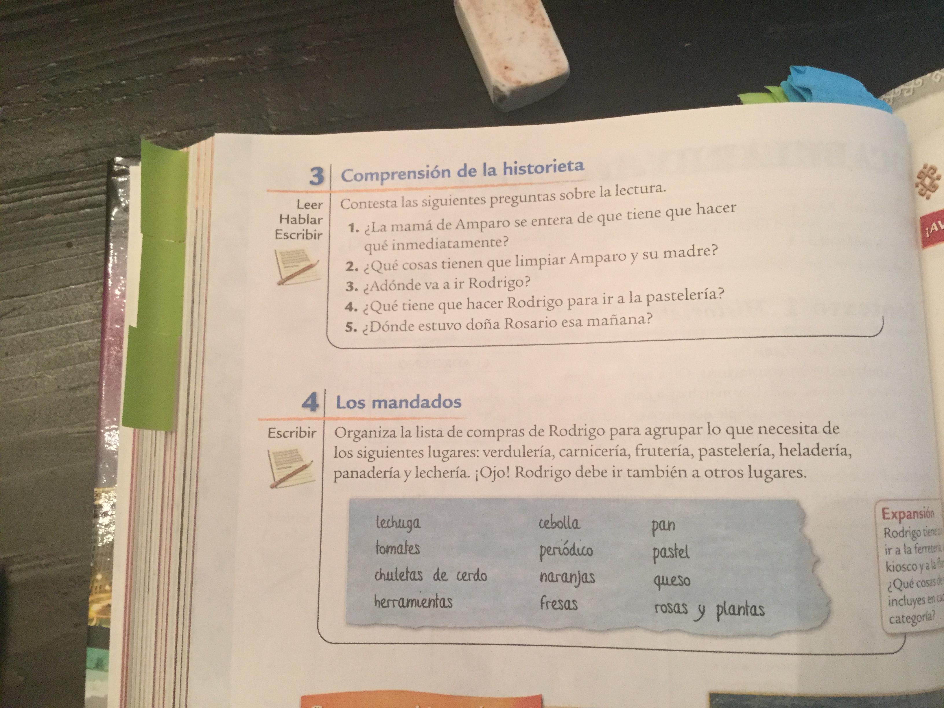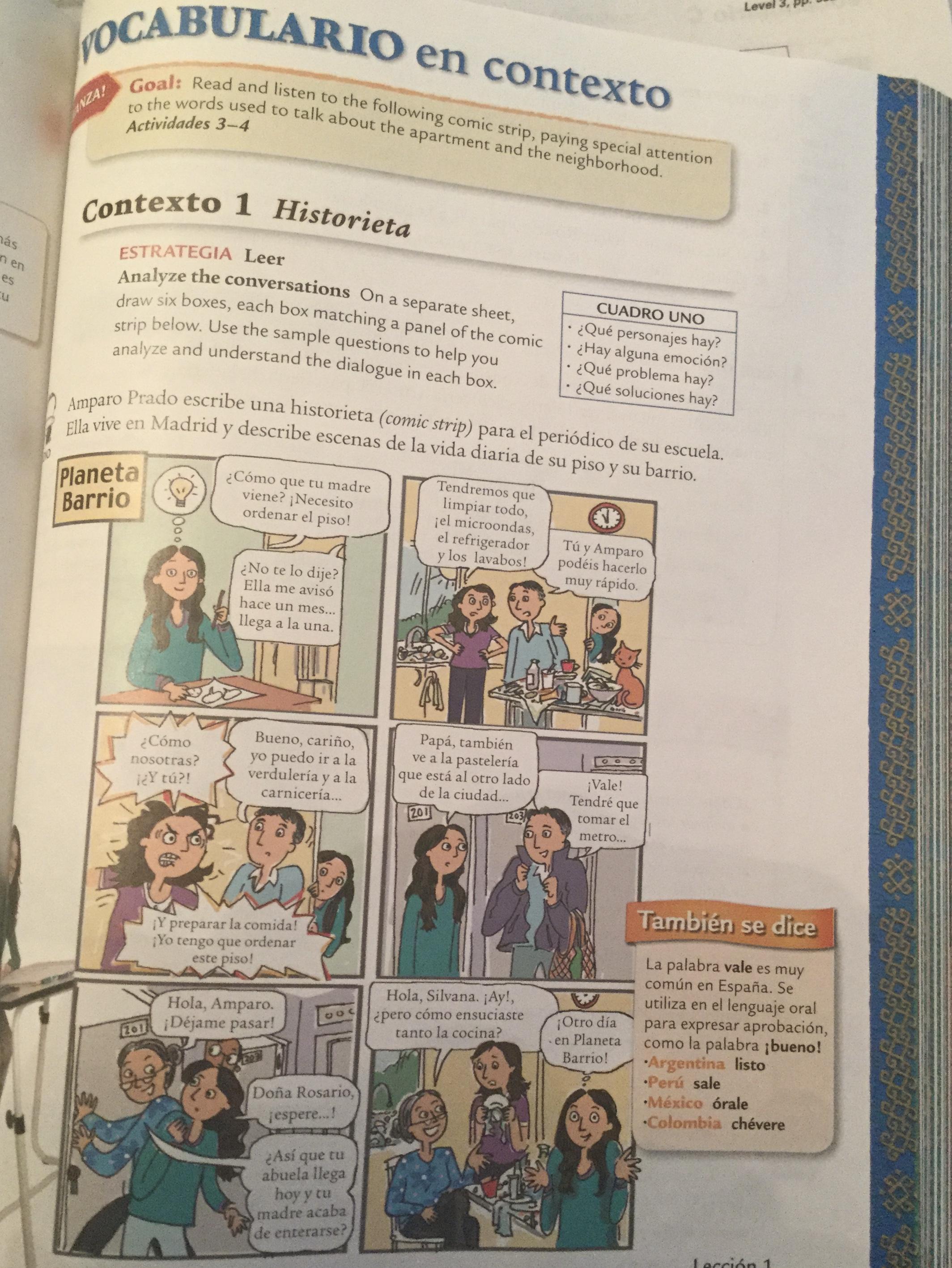 - Exercise 3: Comprensión de la historieta 336, text, complete sentences are opcional)