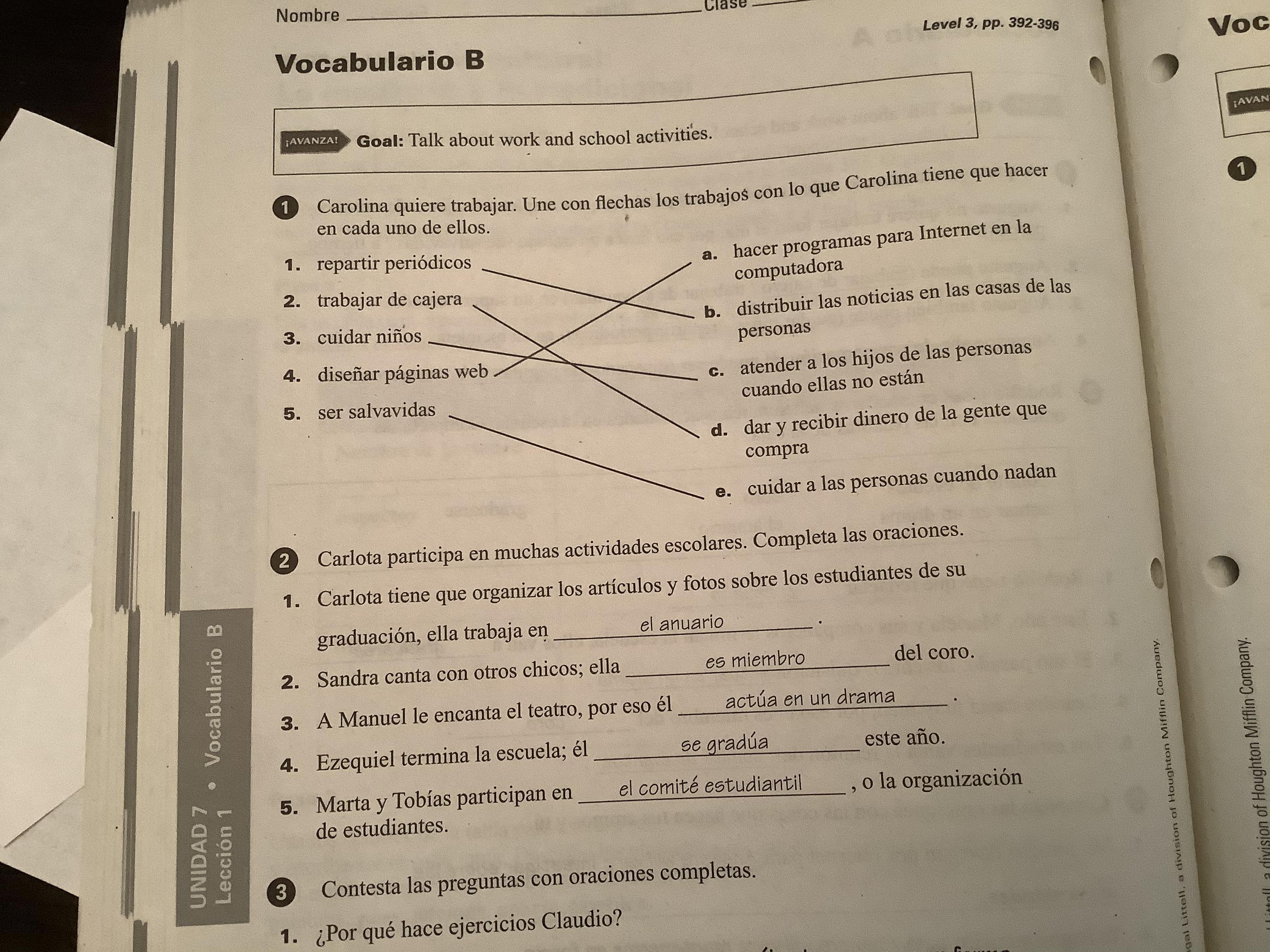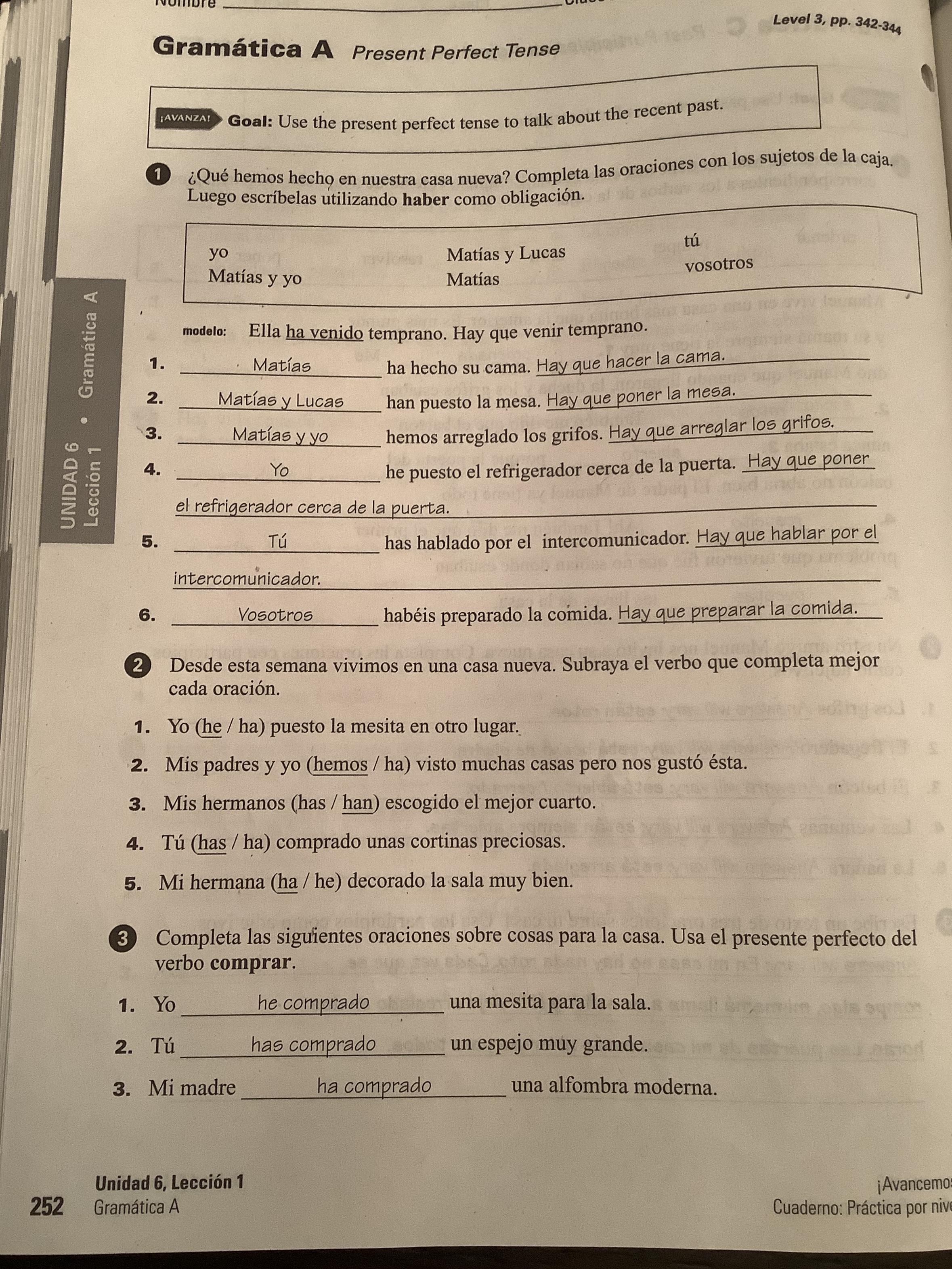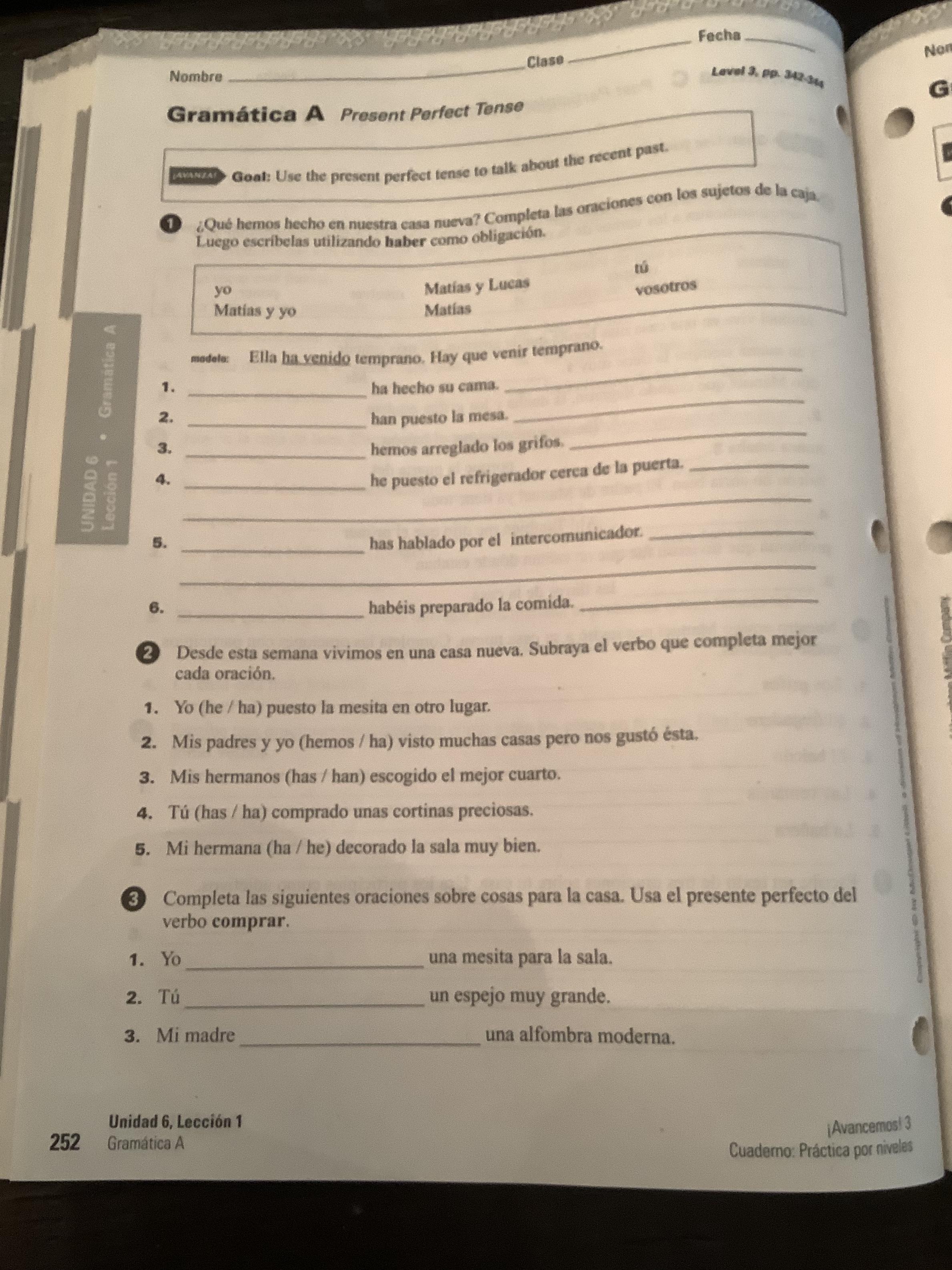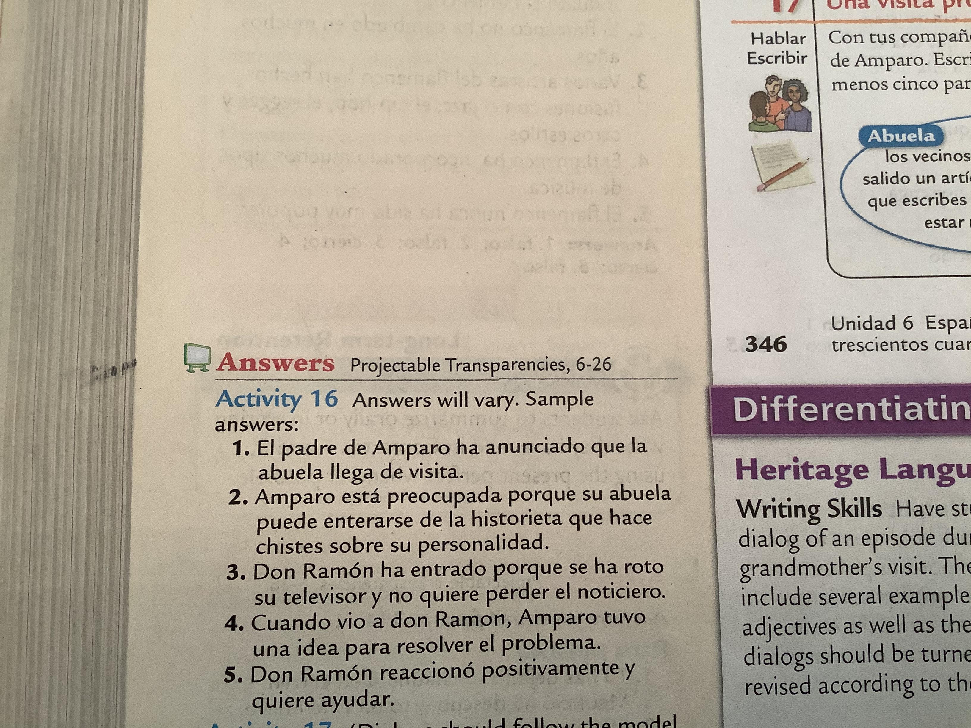 -Exercise 16 (346, text) Oraciones completas.