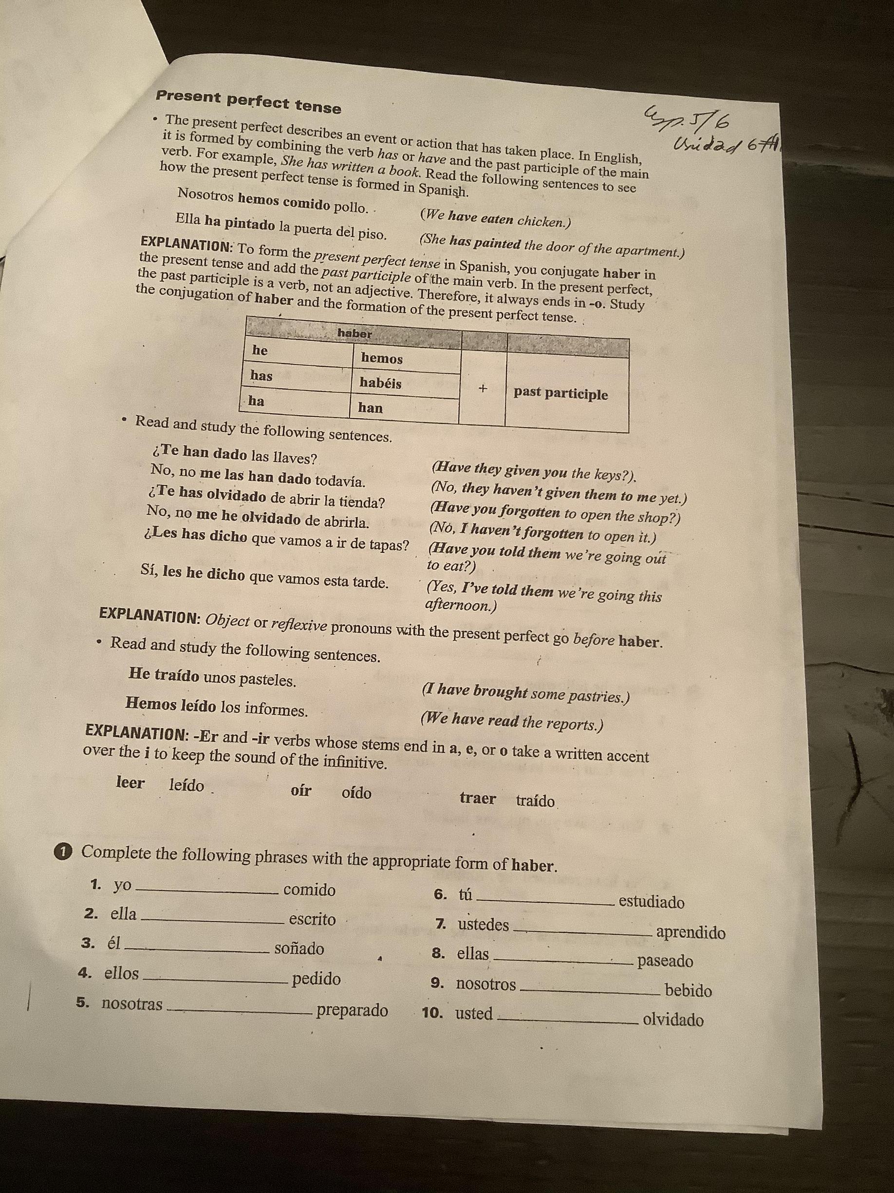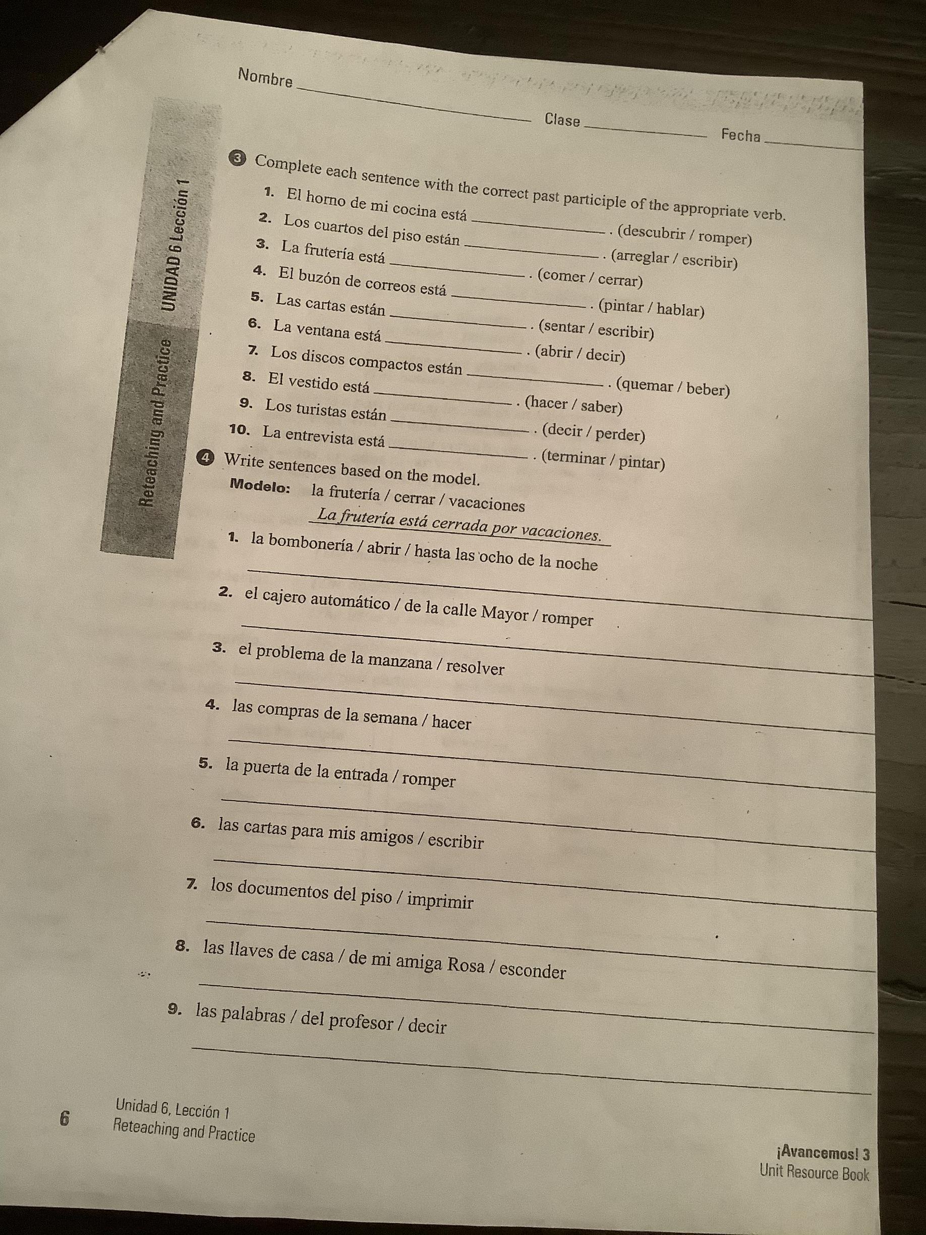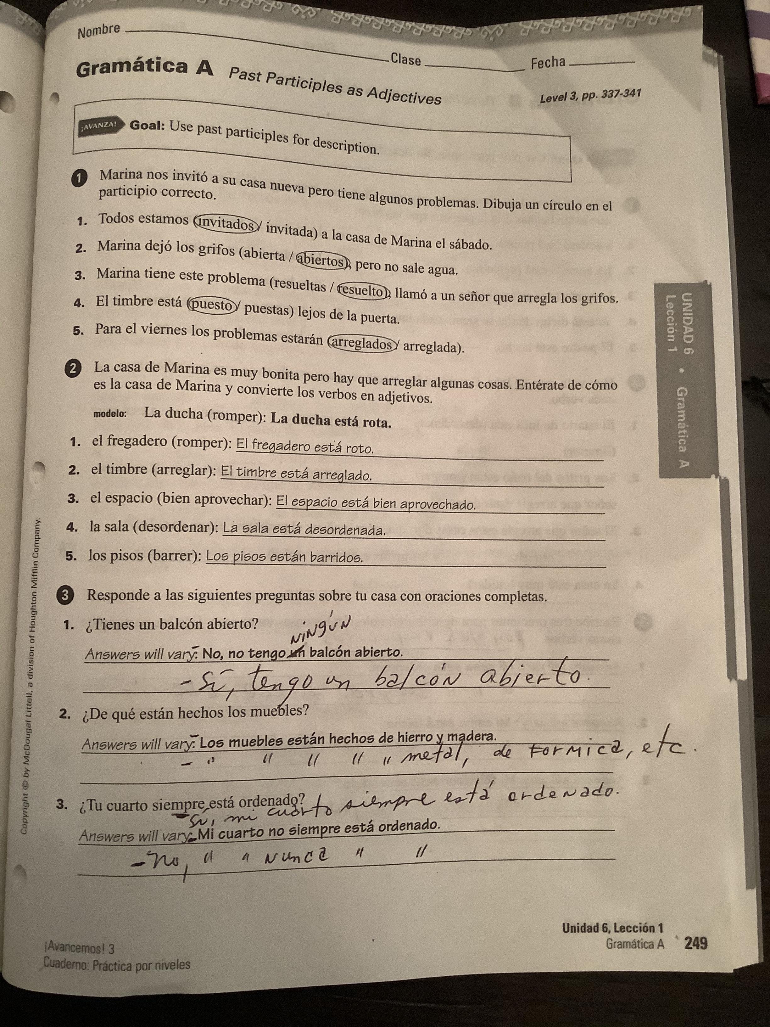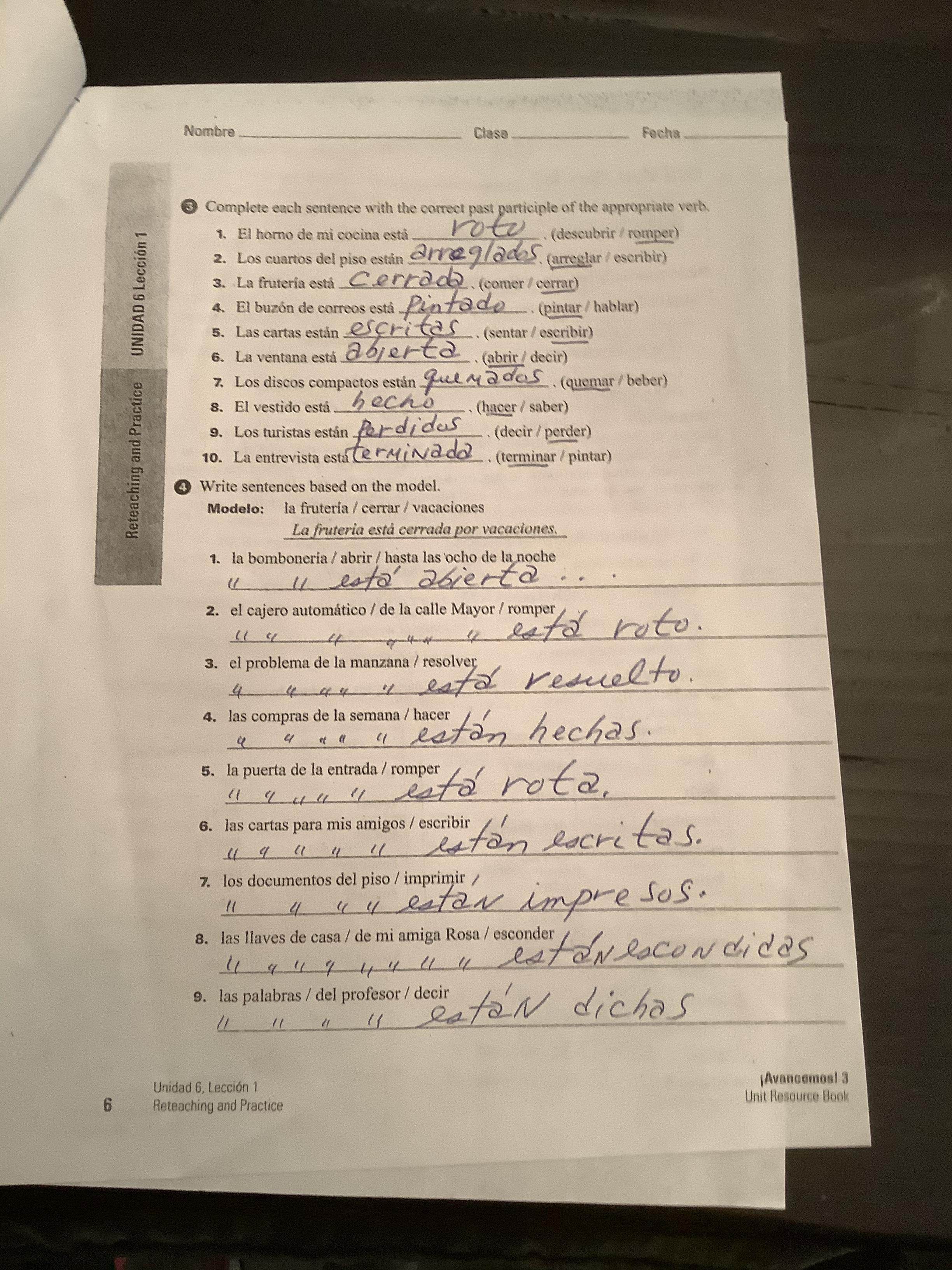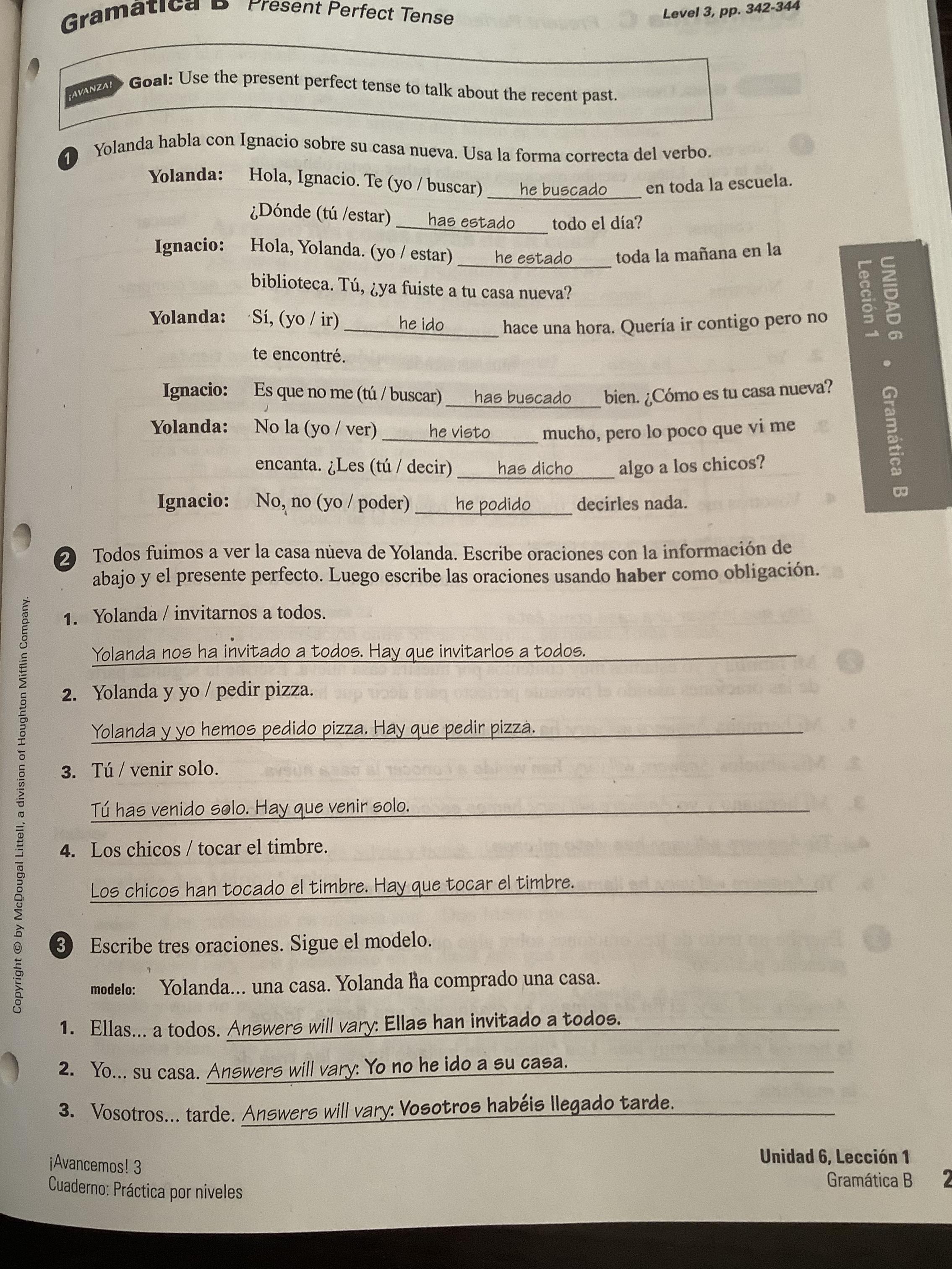 -Exercise 16 (346, text) Oraciones completas.