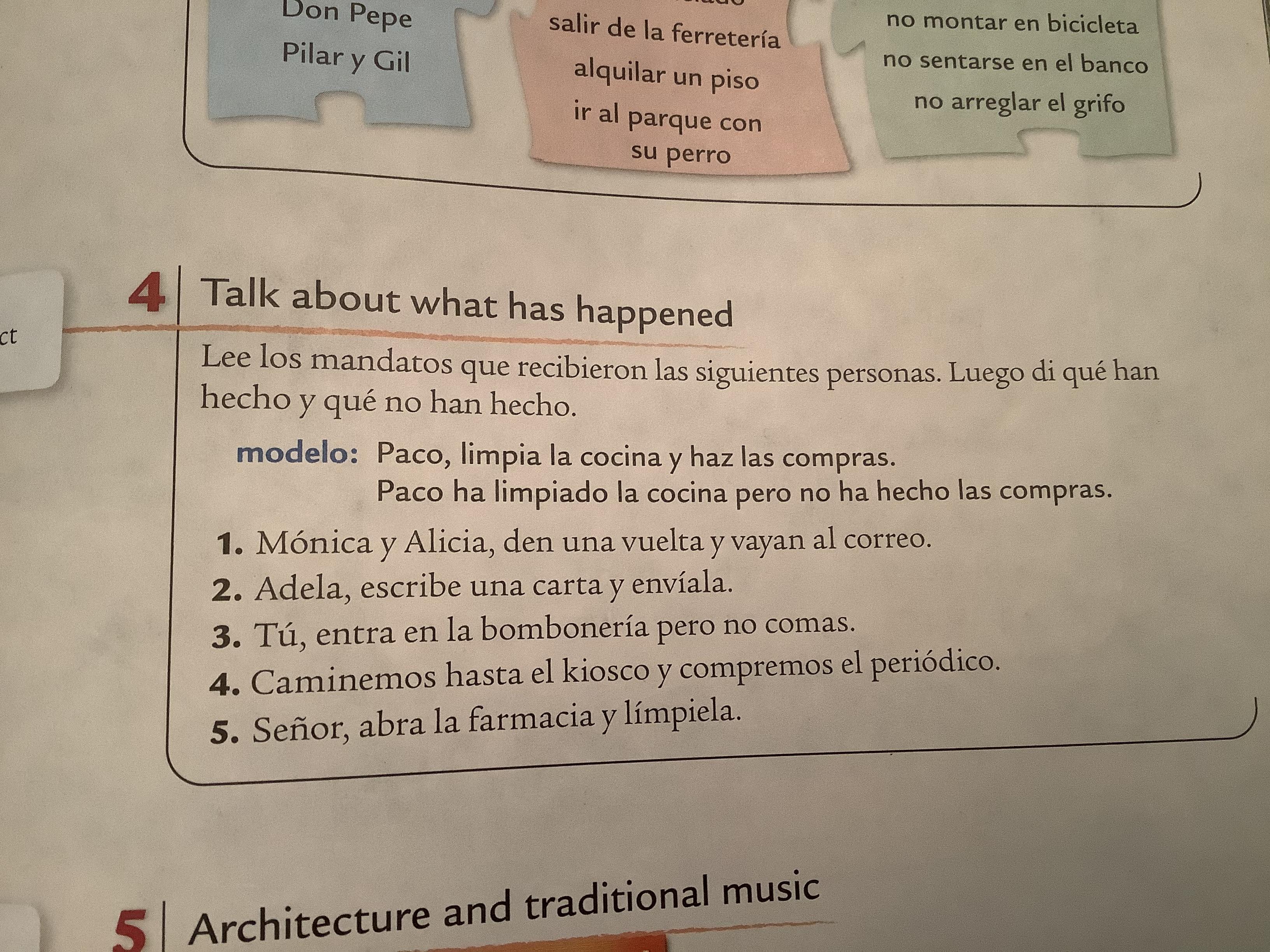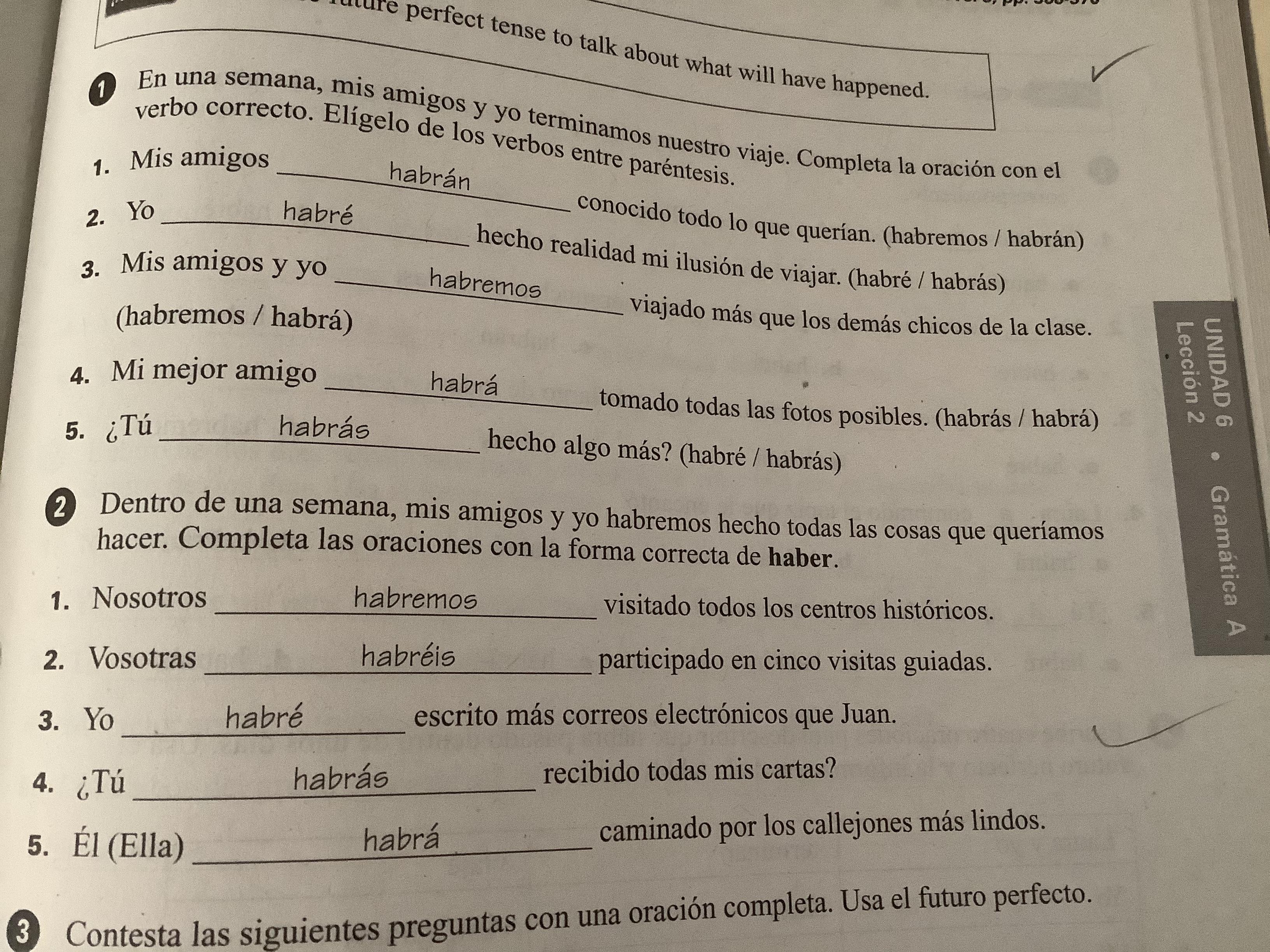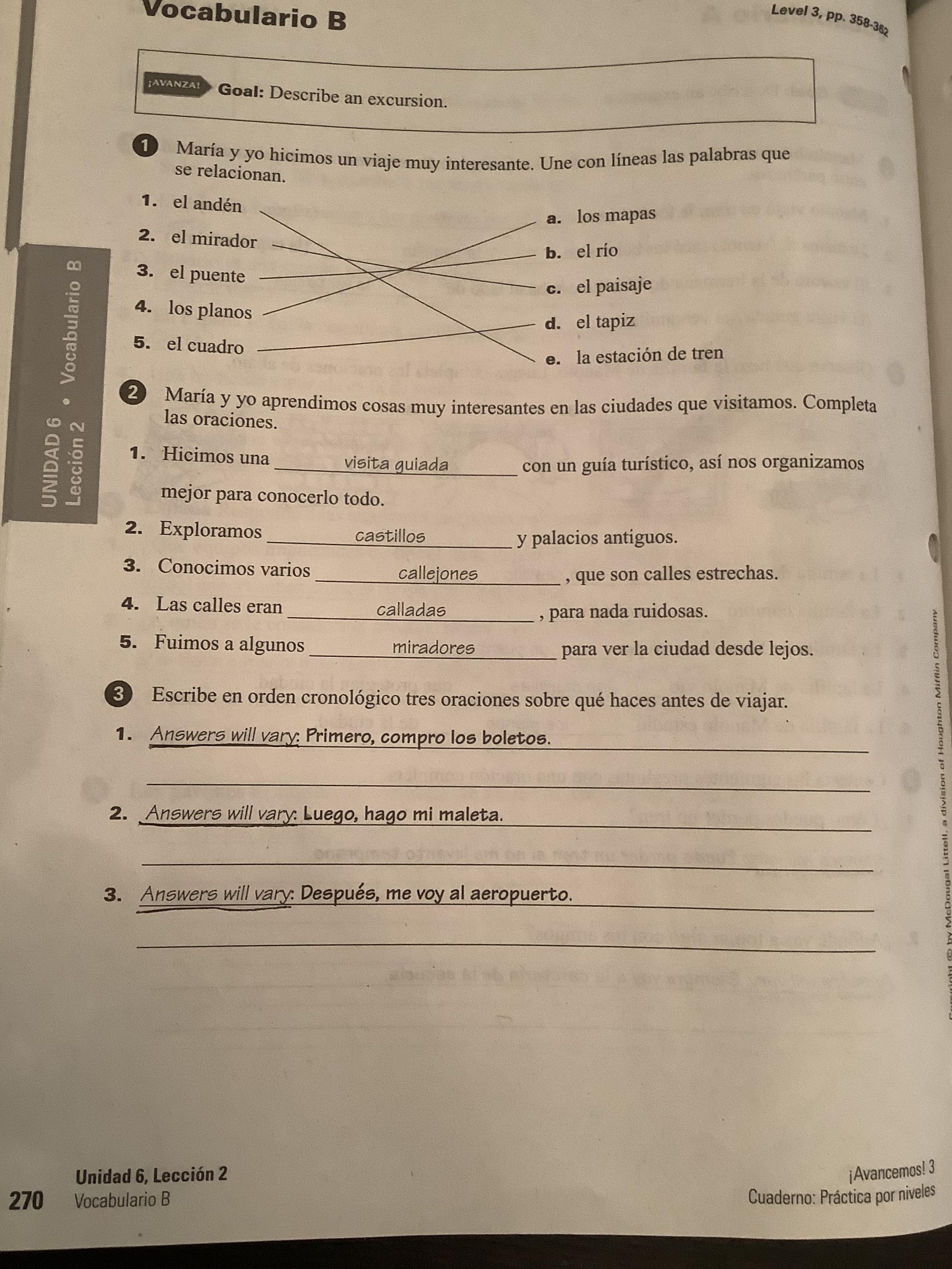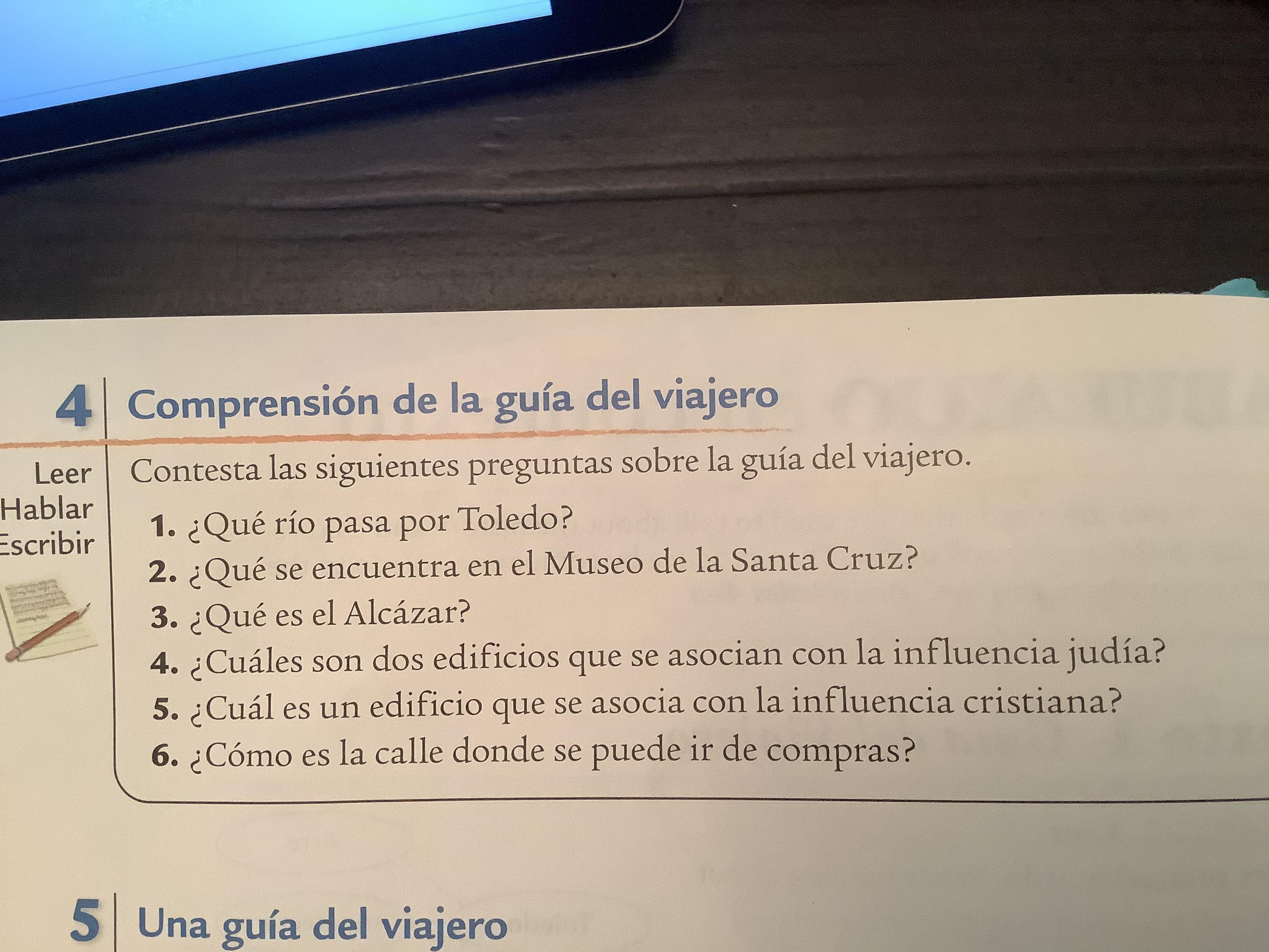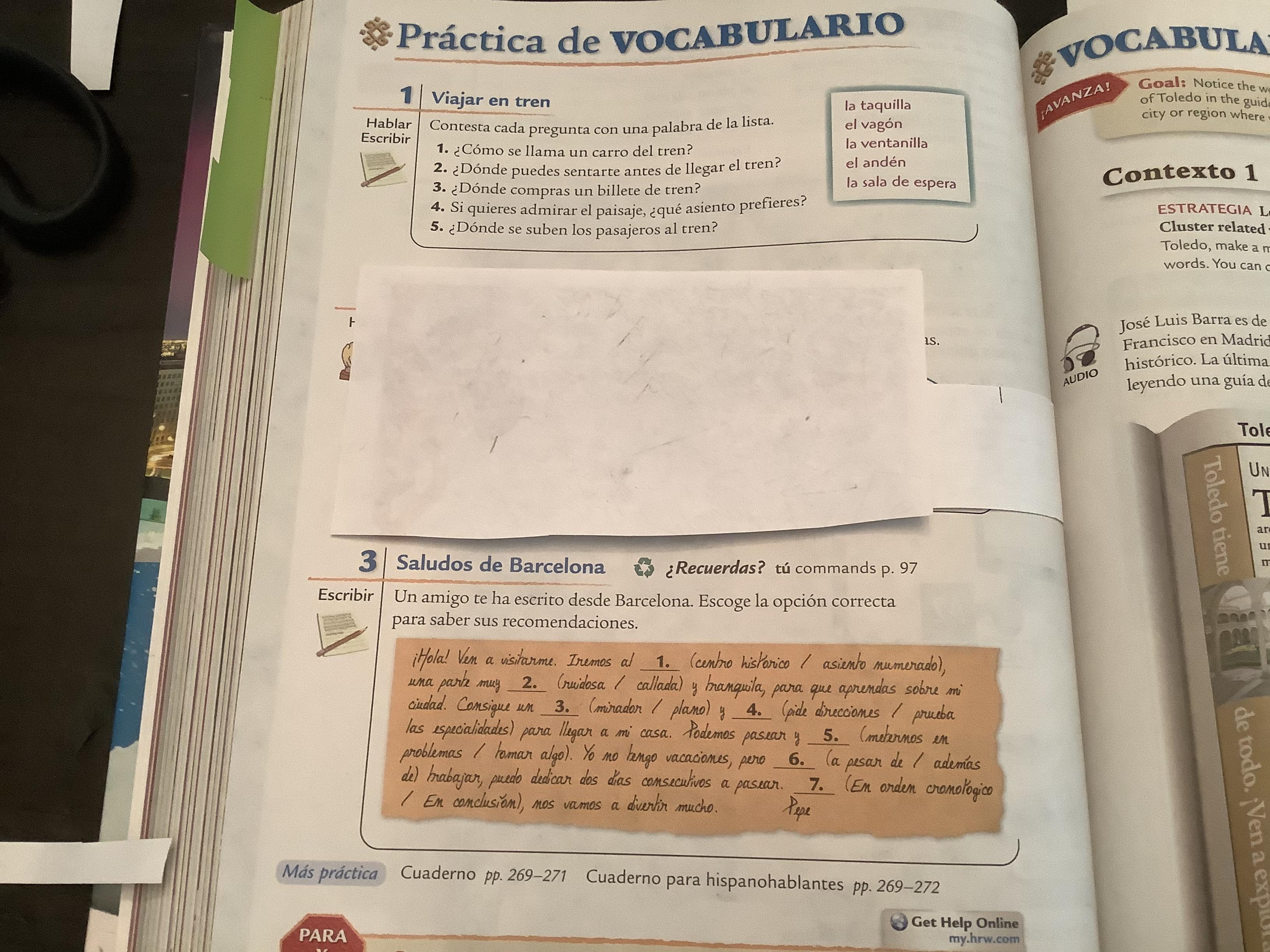 -Read Contexto 1 Guía del viajero and answer exercise 4 with complete sentences.(361-362 text)