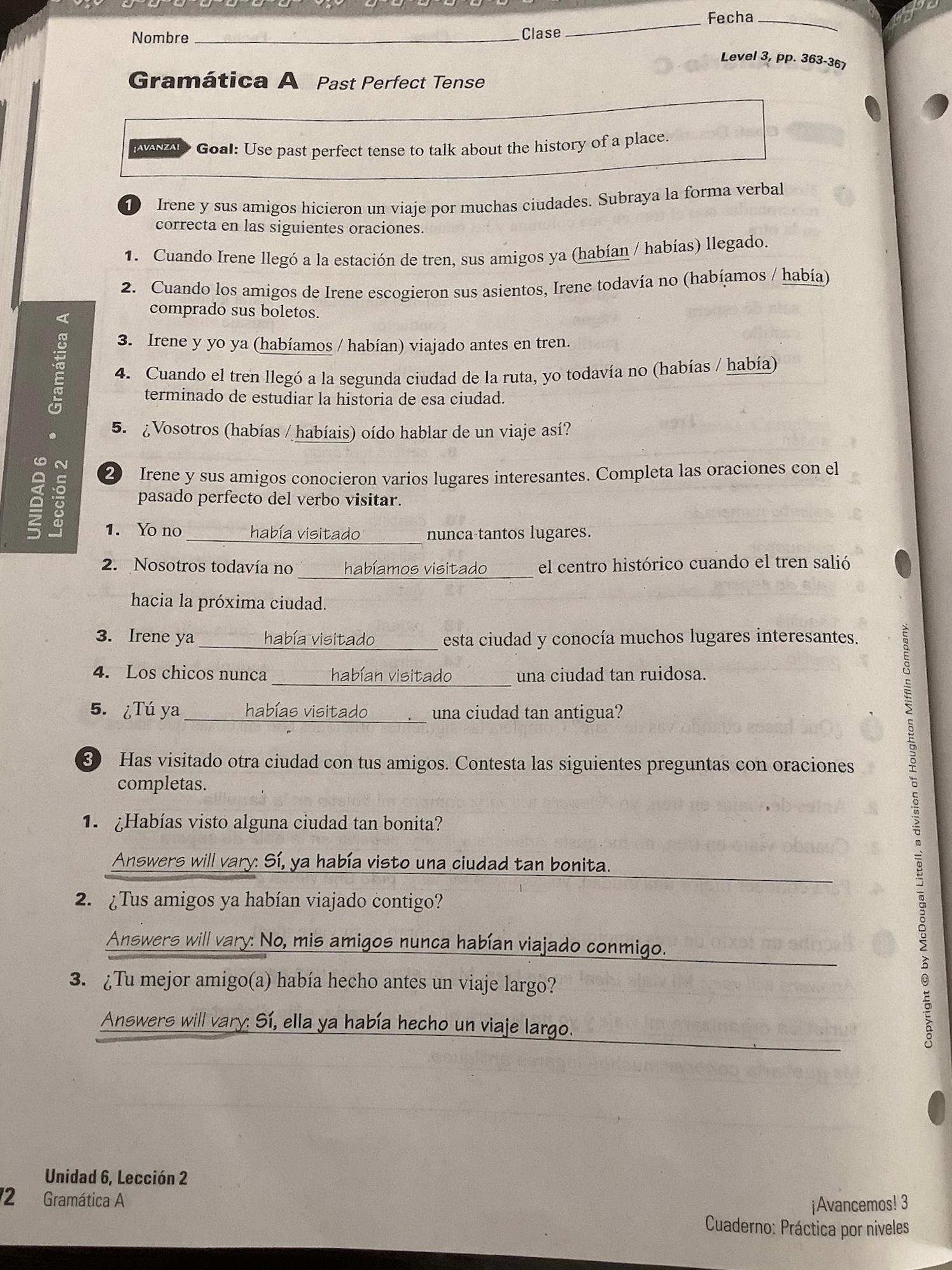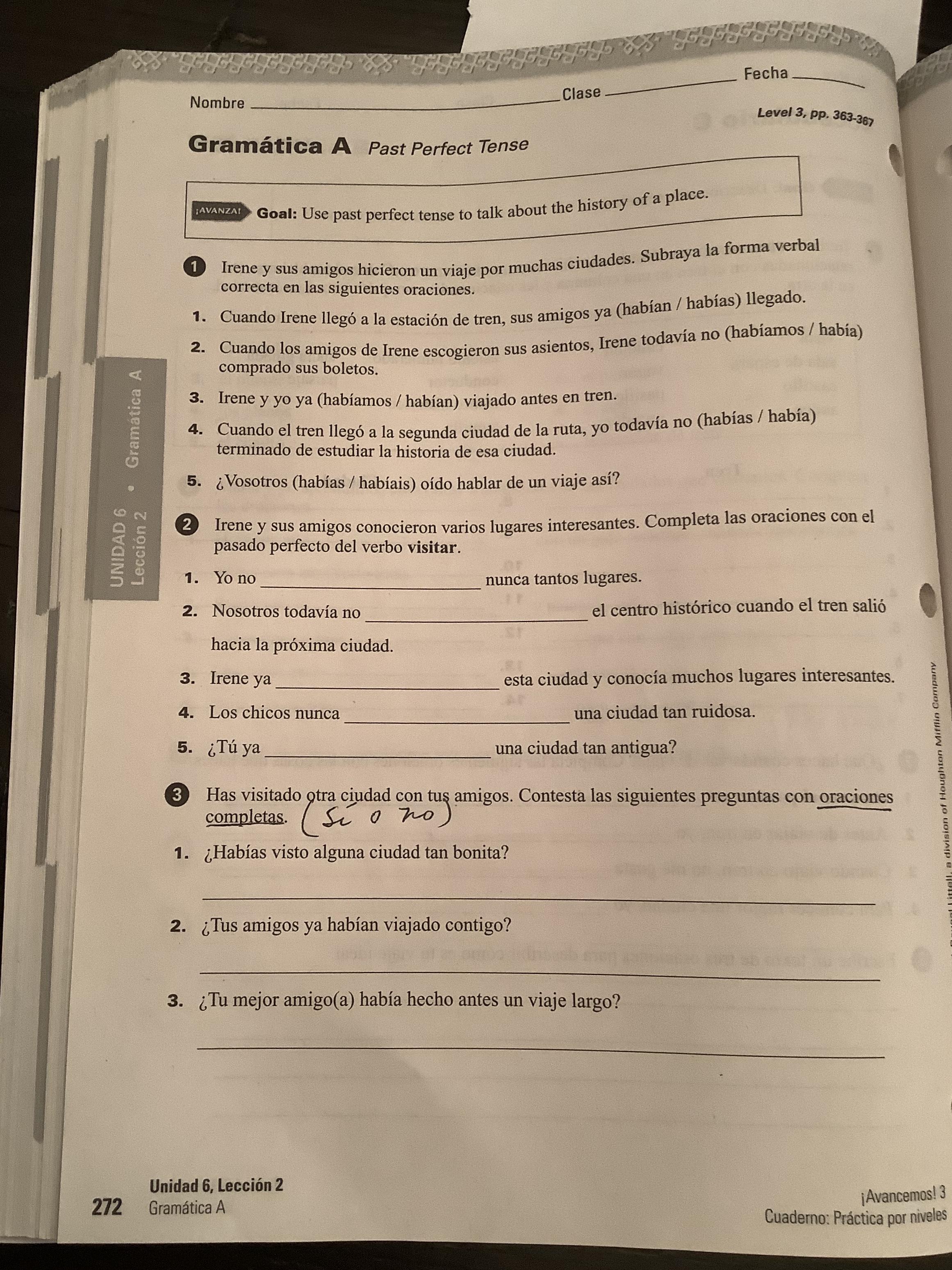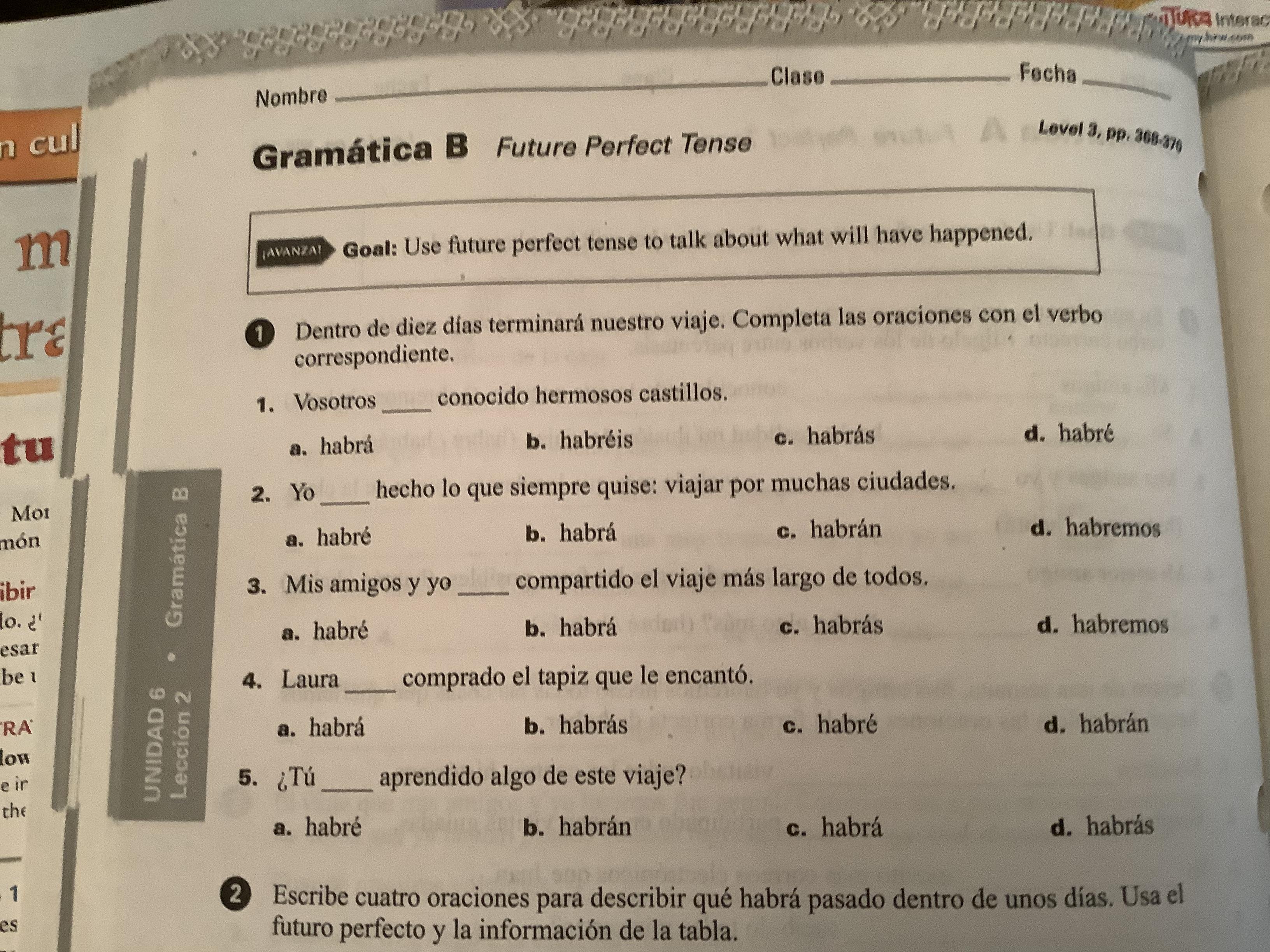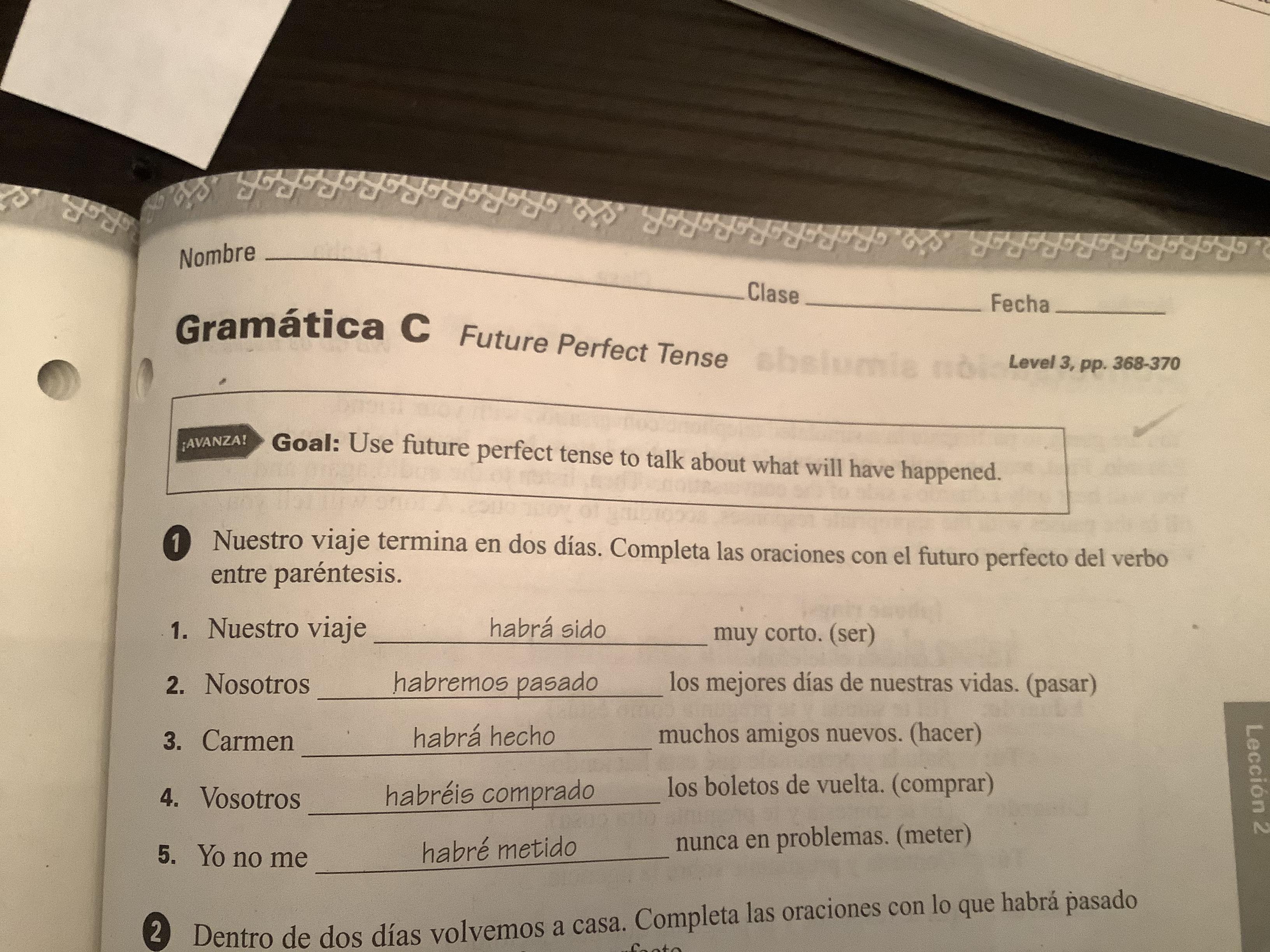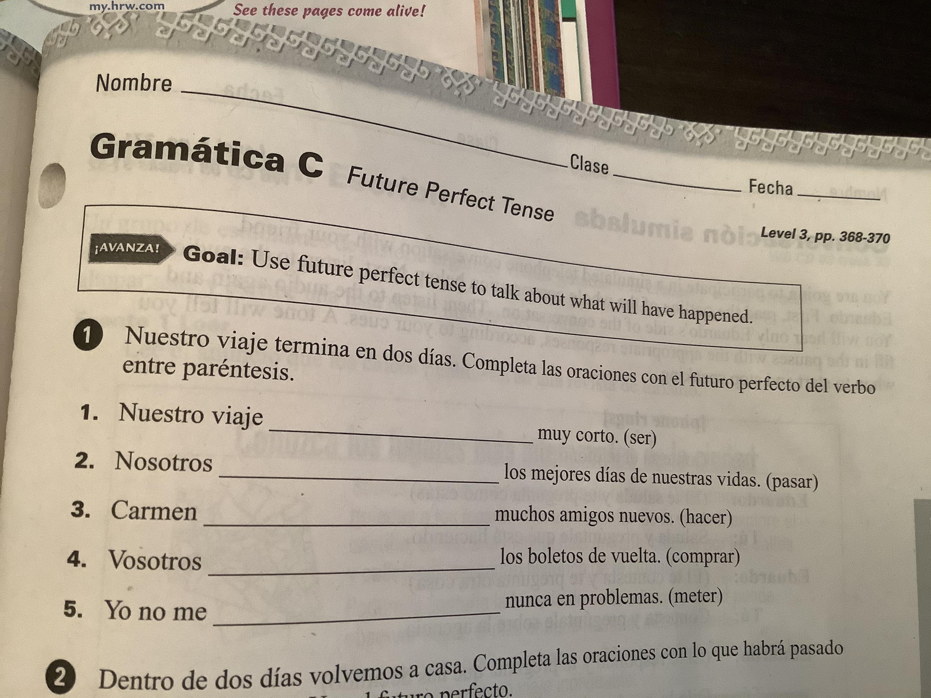 Please note that in Exercise 6 (398, text) and Exs. 2-3 (cuaderno) the practice is purely imperfect subjunctive, Which should be preceded by a first clause in the past indicative.