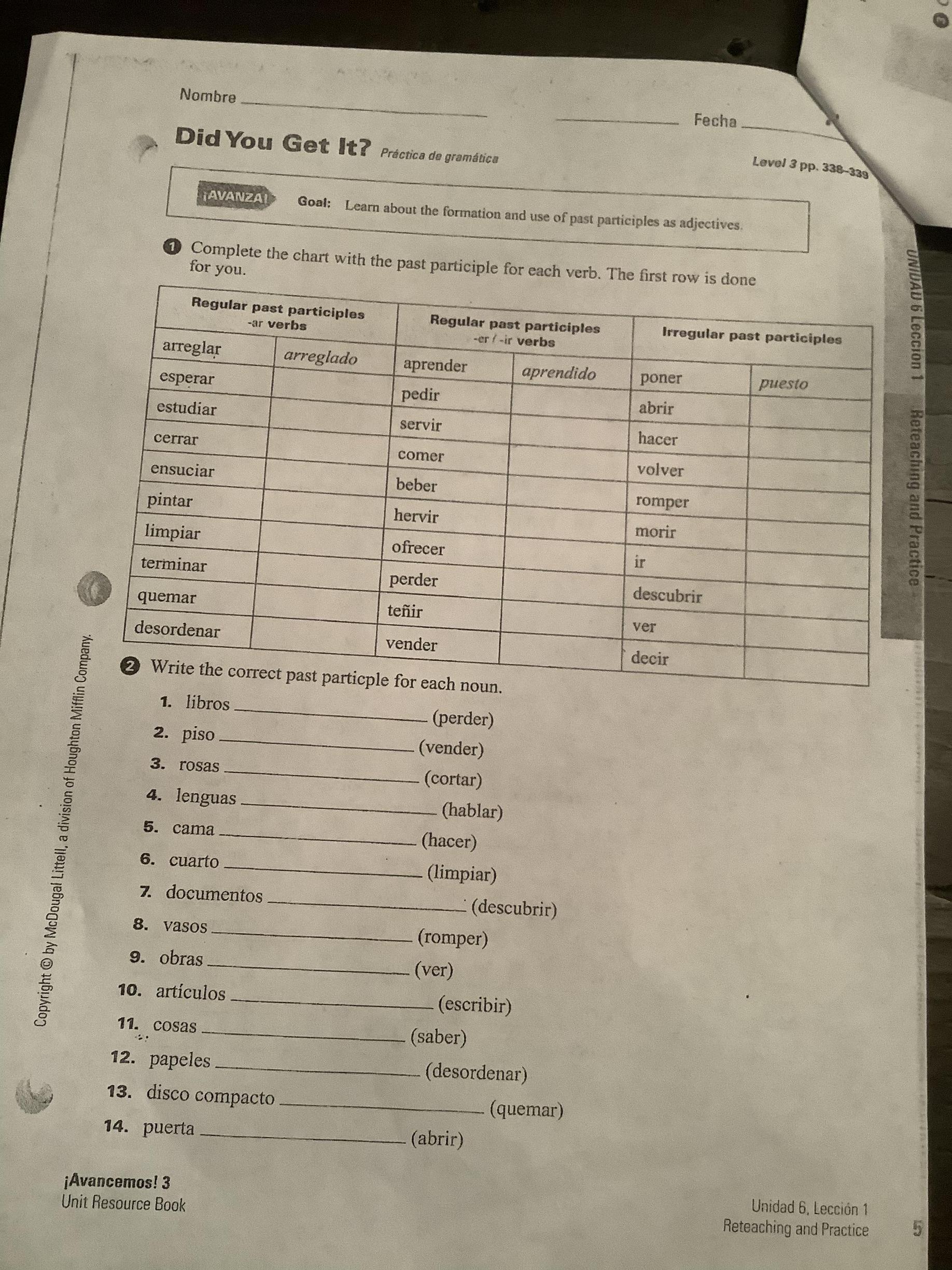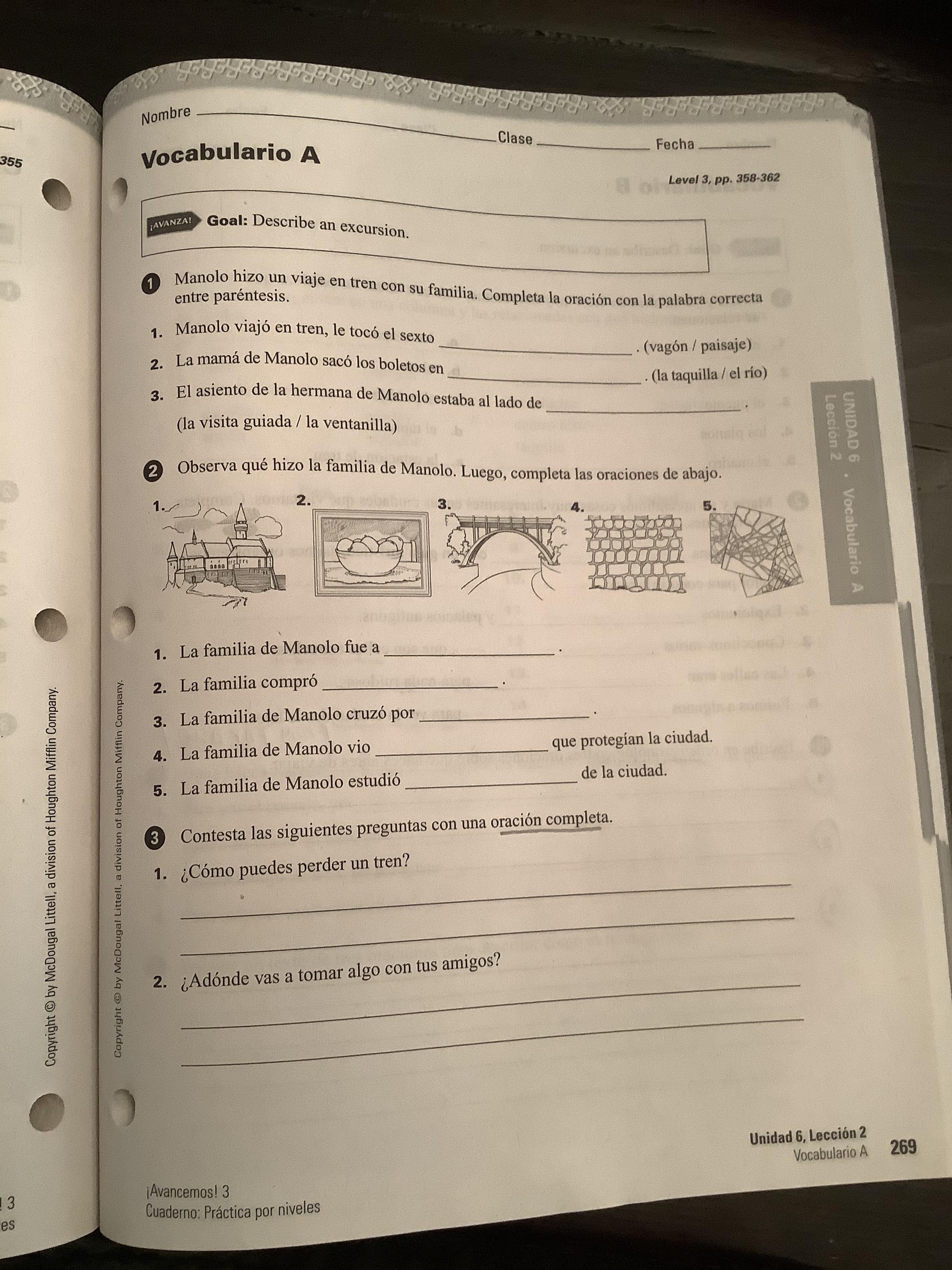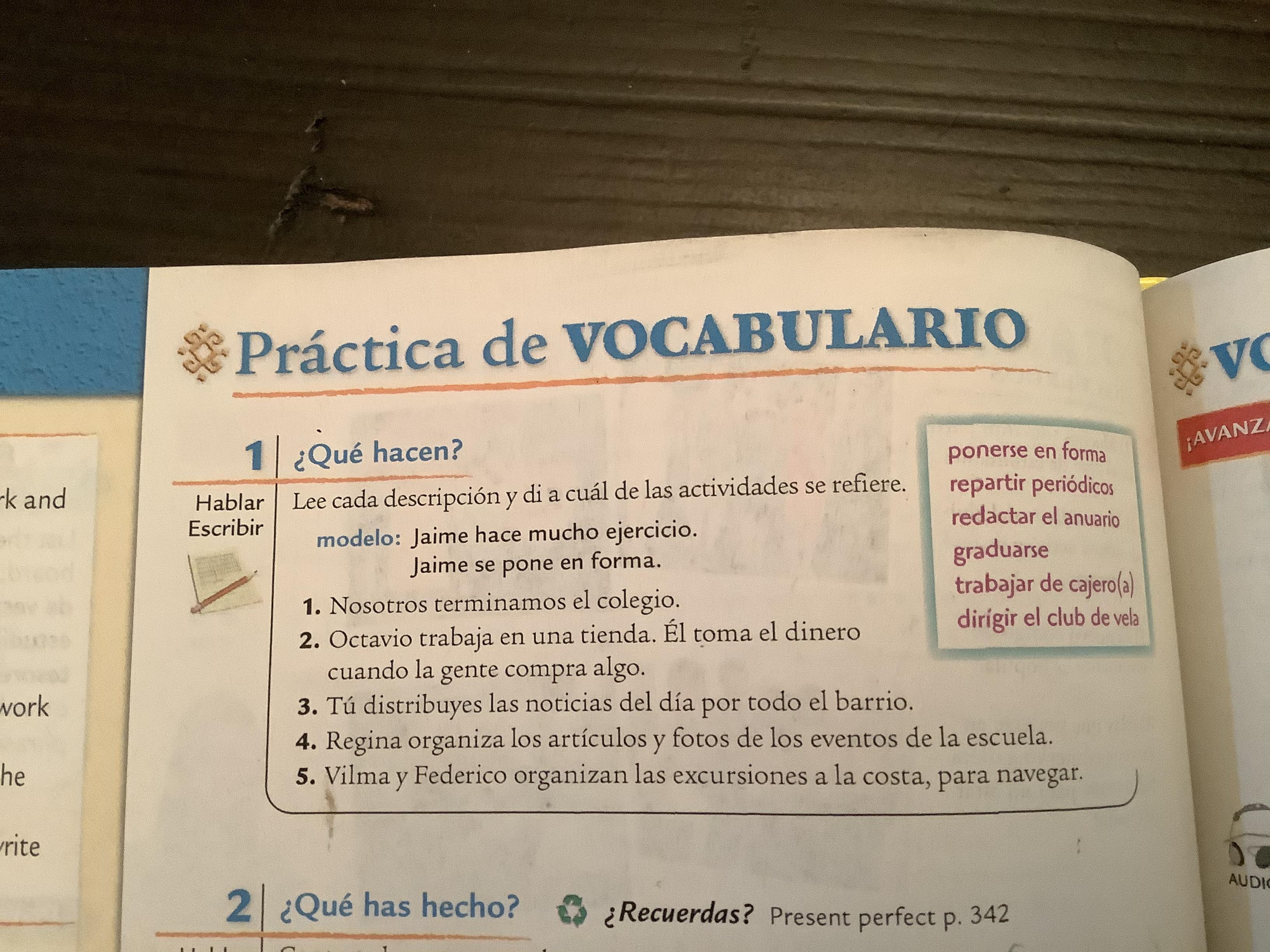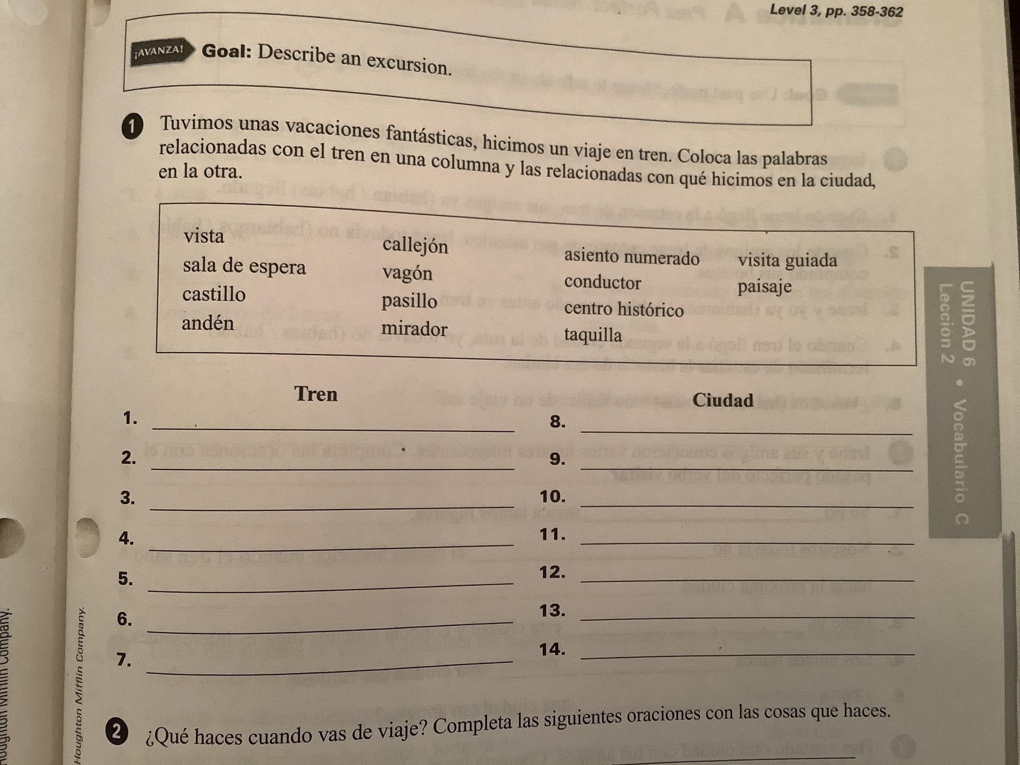 Preparar lista de vocabulario Unidad 6 #1 (353, texto)
