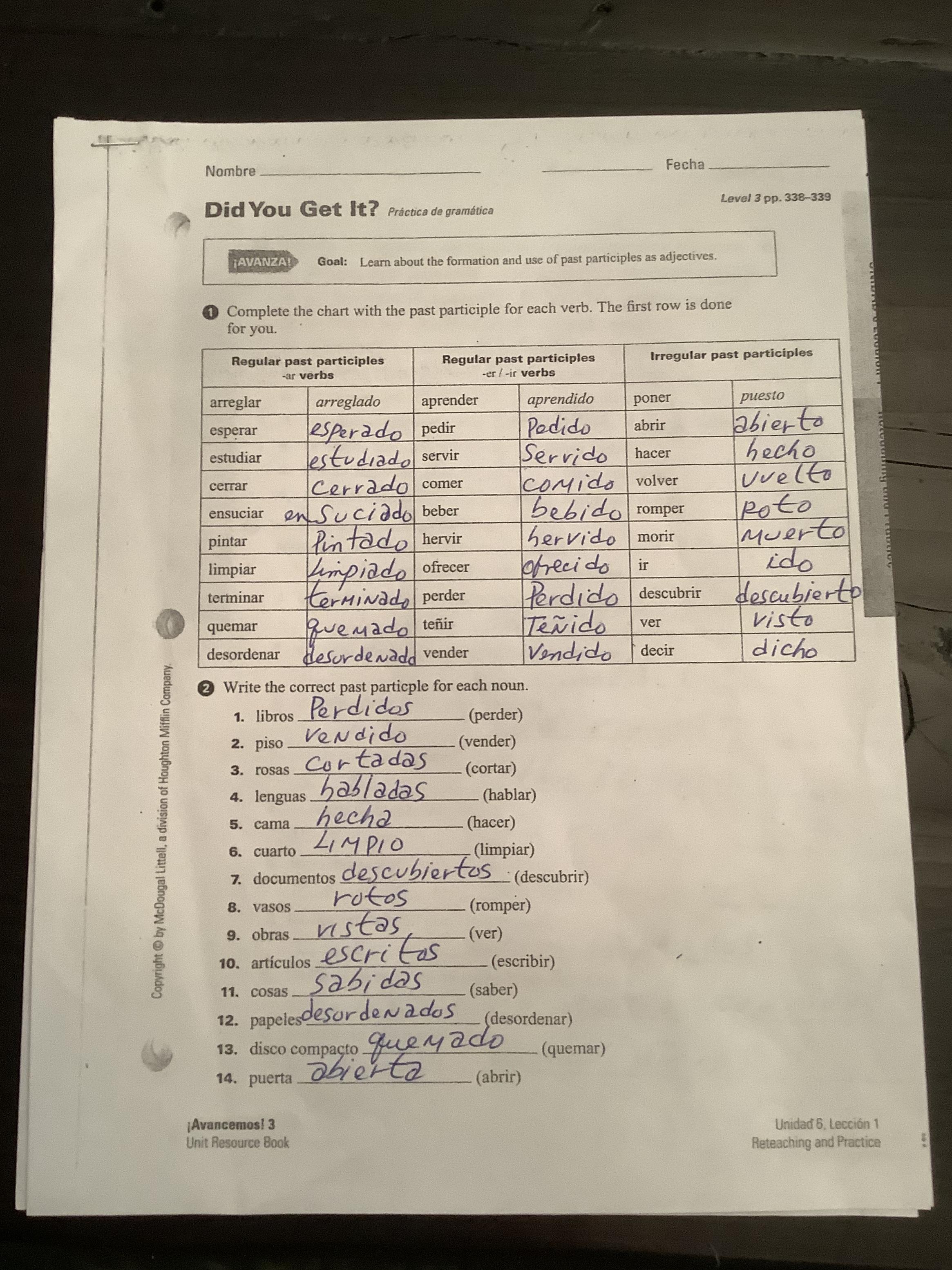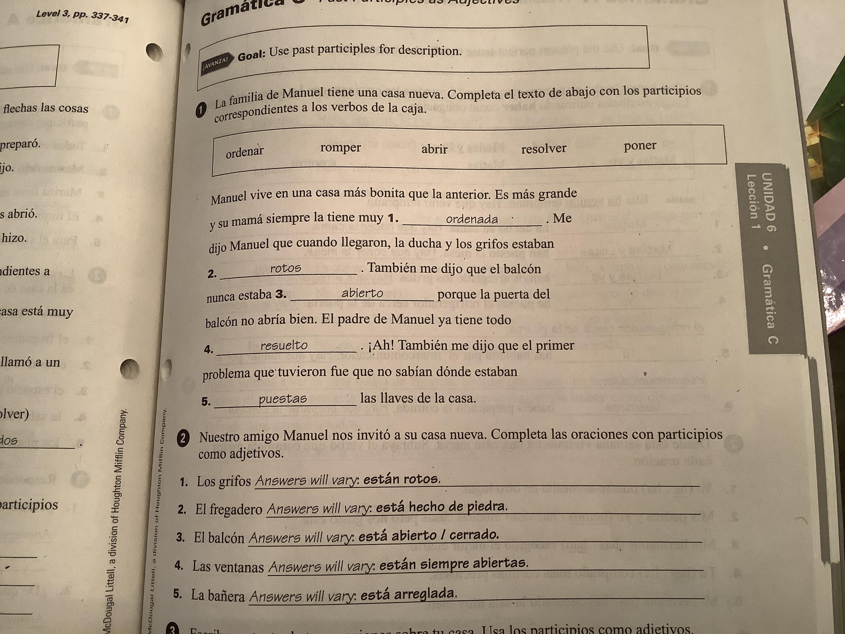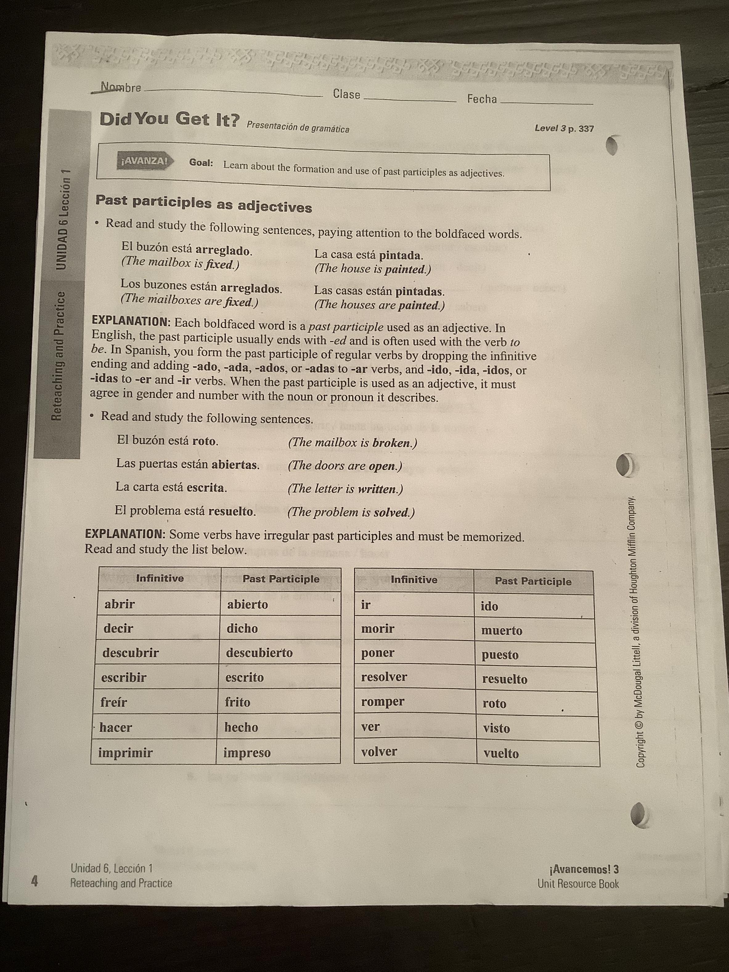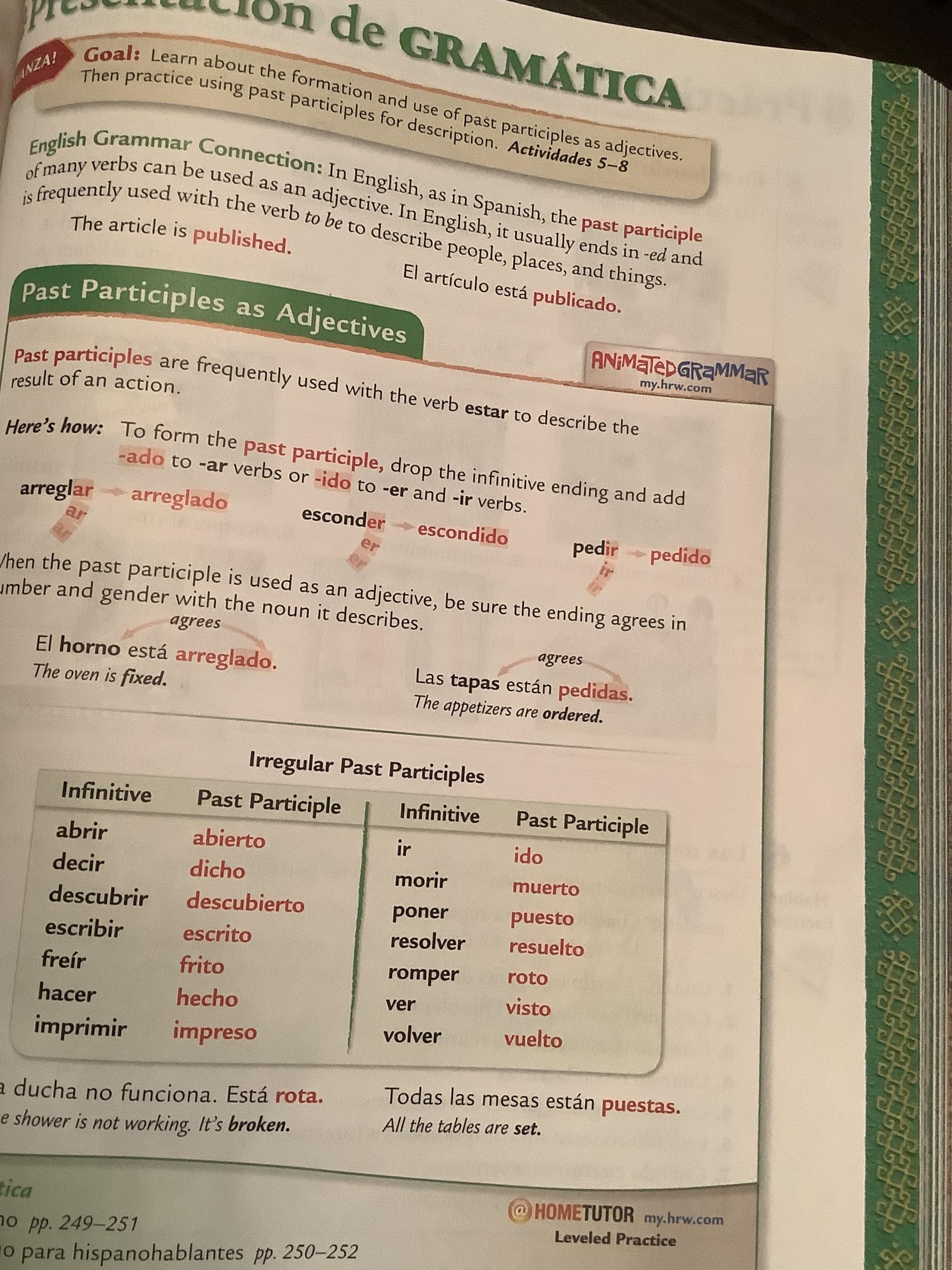 -Read carefully Past Participles as Adjectives (337, text)