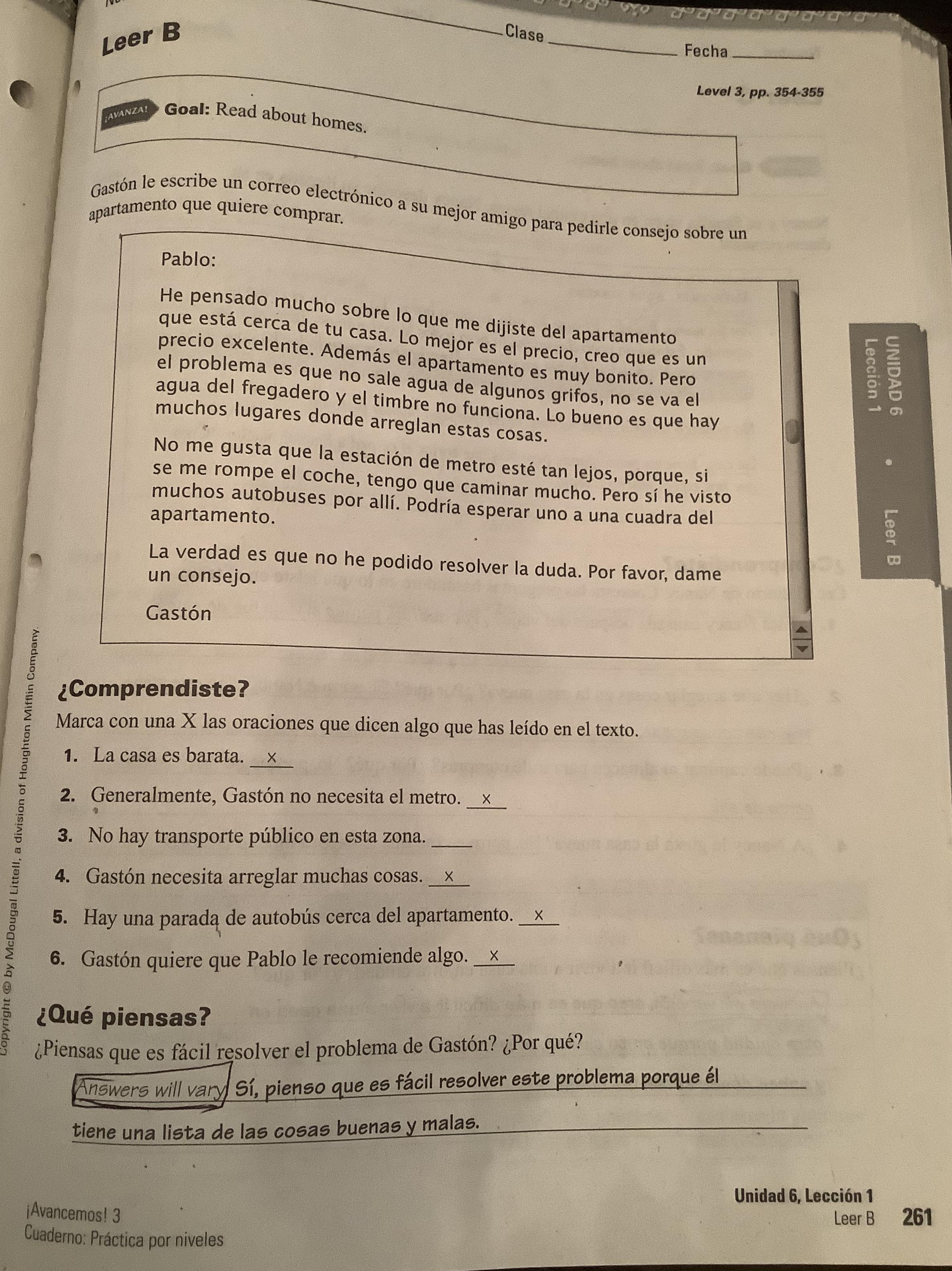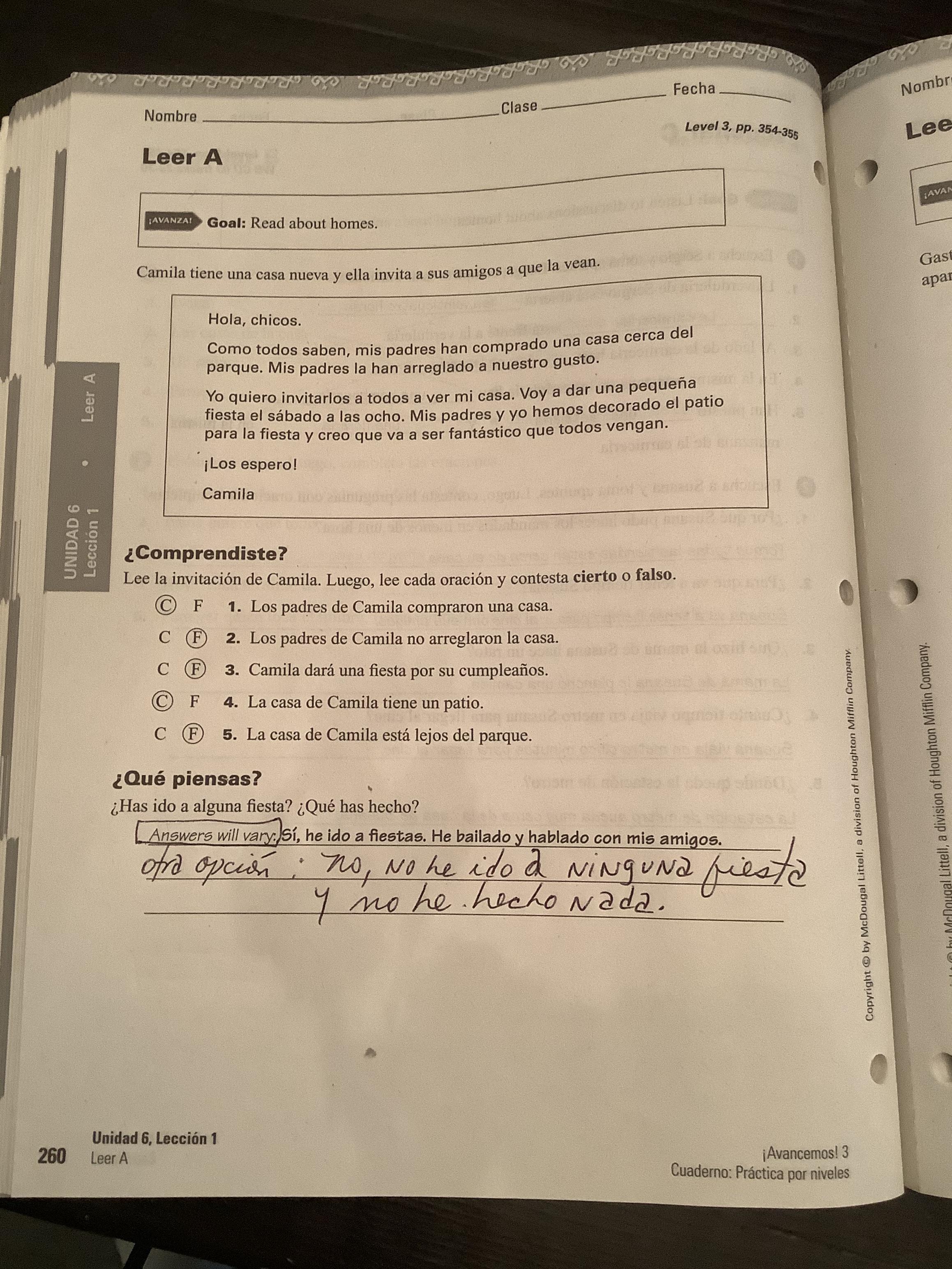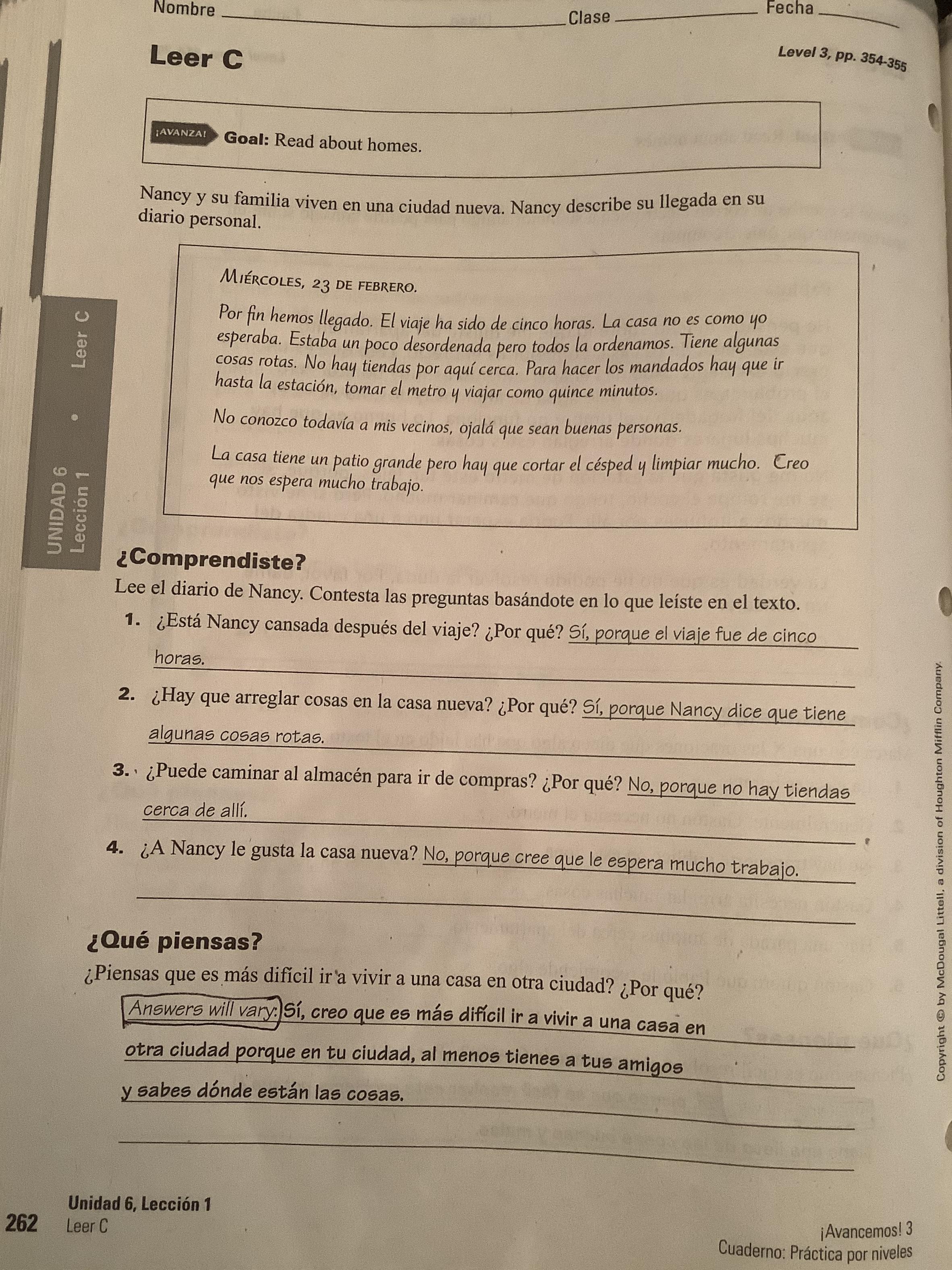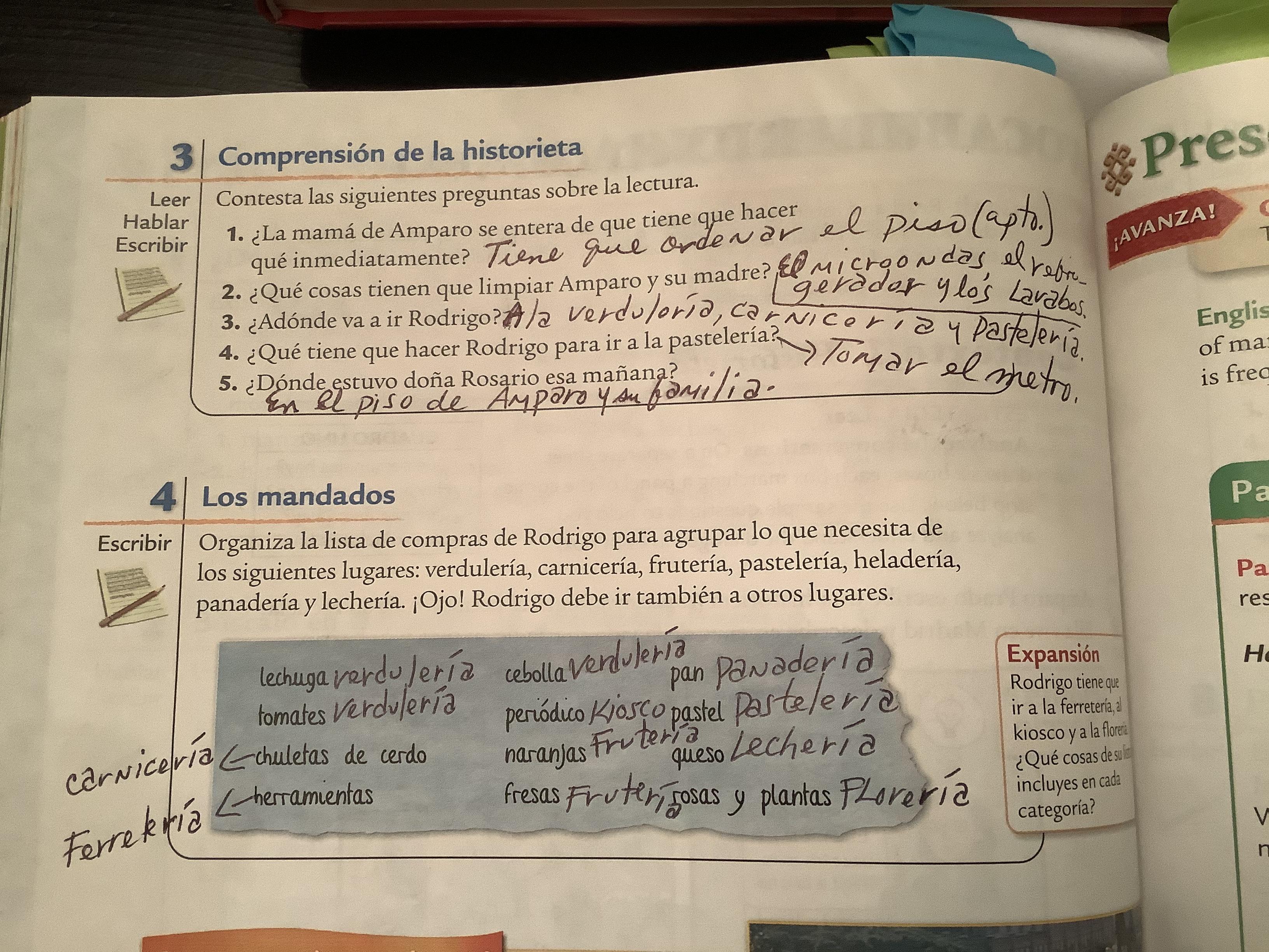 -Leer A, B, C and do their respective exercises COMPRENDISTE? And QUÉ PIENSAS? (260, 261, 262, Cuaderno)