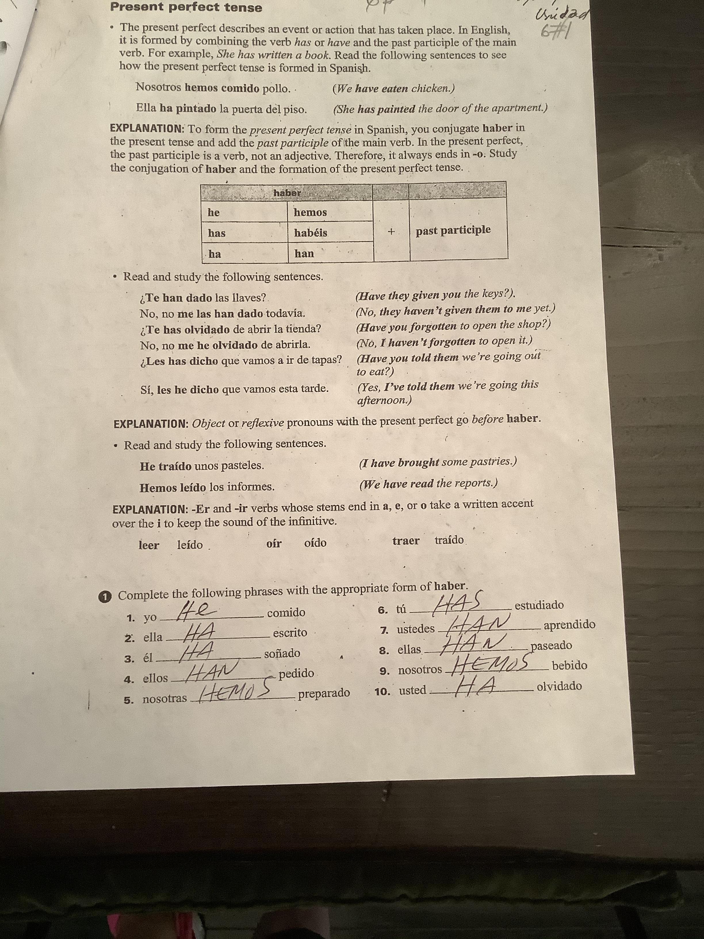 By now you’ve studied your vocabulary list for Unit 6#1, but assuming that you did it about ten days ago, I’d like to ask you to please study it again very carefully so that you can do the exercises without consulting the text while doing it.