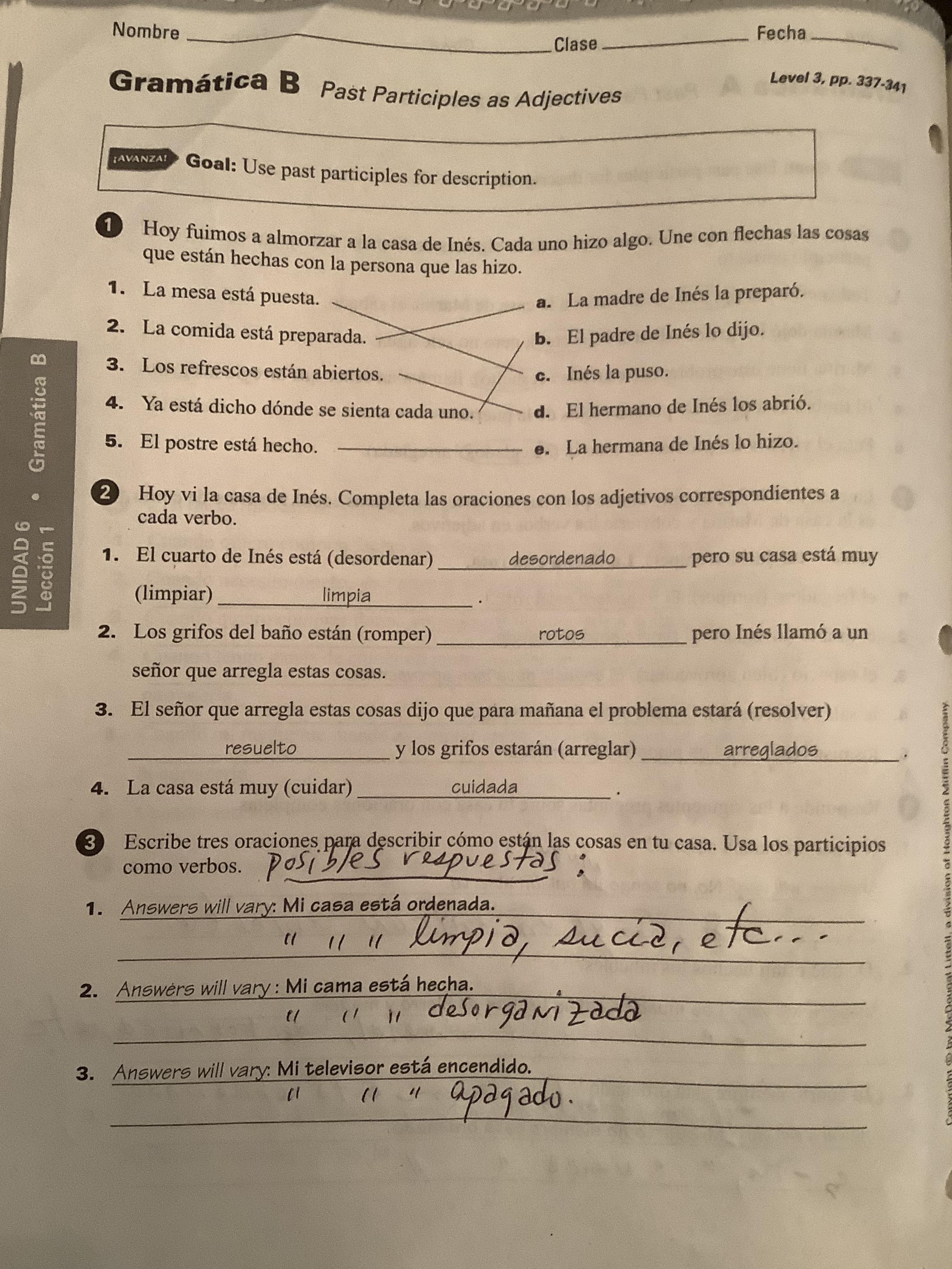 -Review past participles as adjectives, and do exercises 1-4 (see attachments)