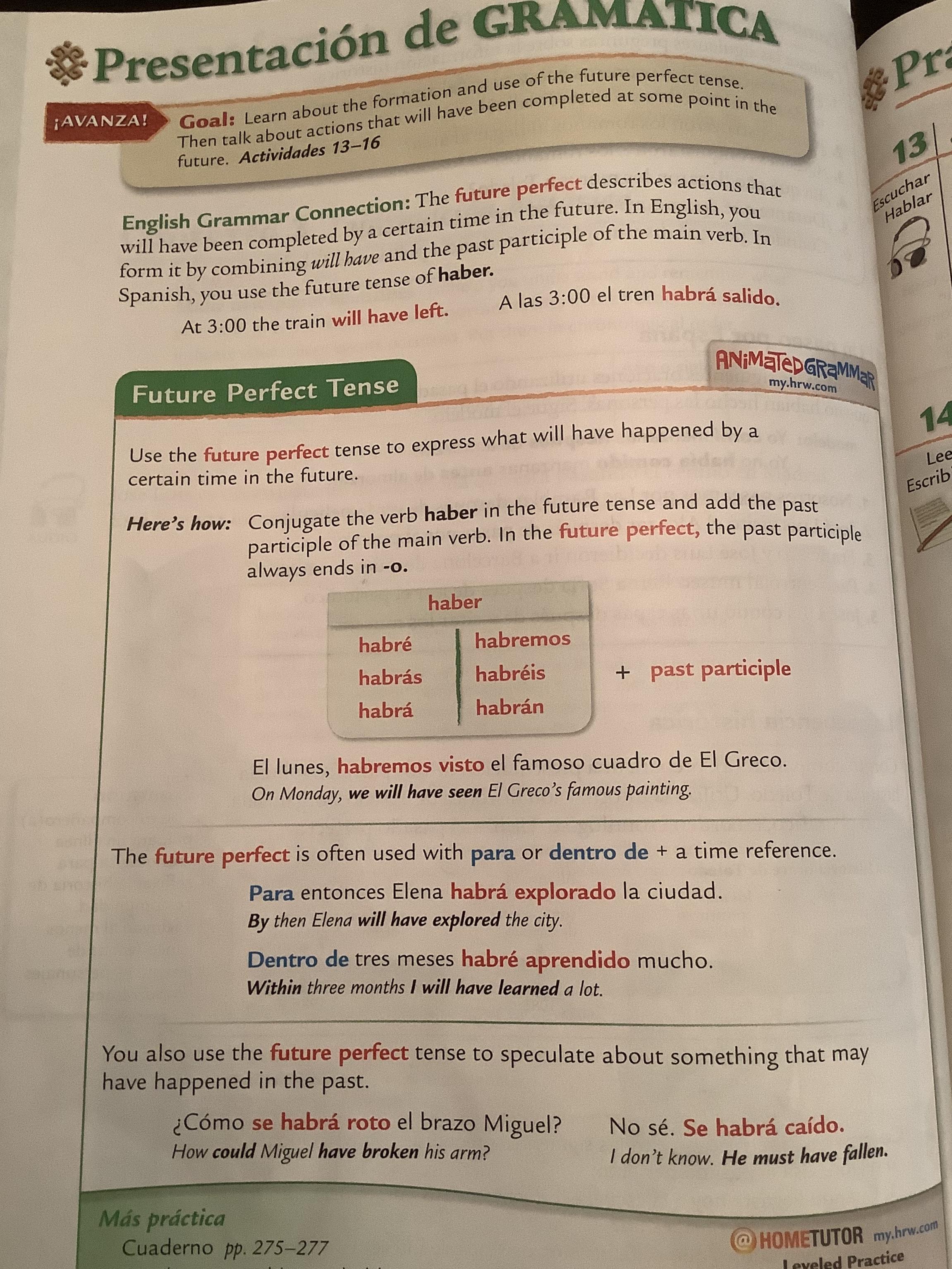 -Learn the conjugation of the Future perfect, it’s forms and uses. (368, text)
