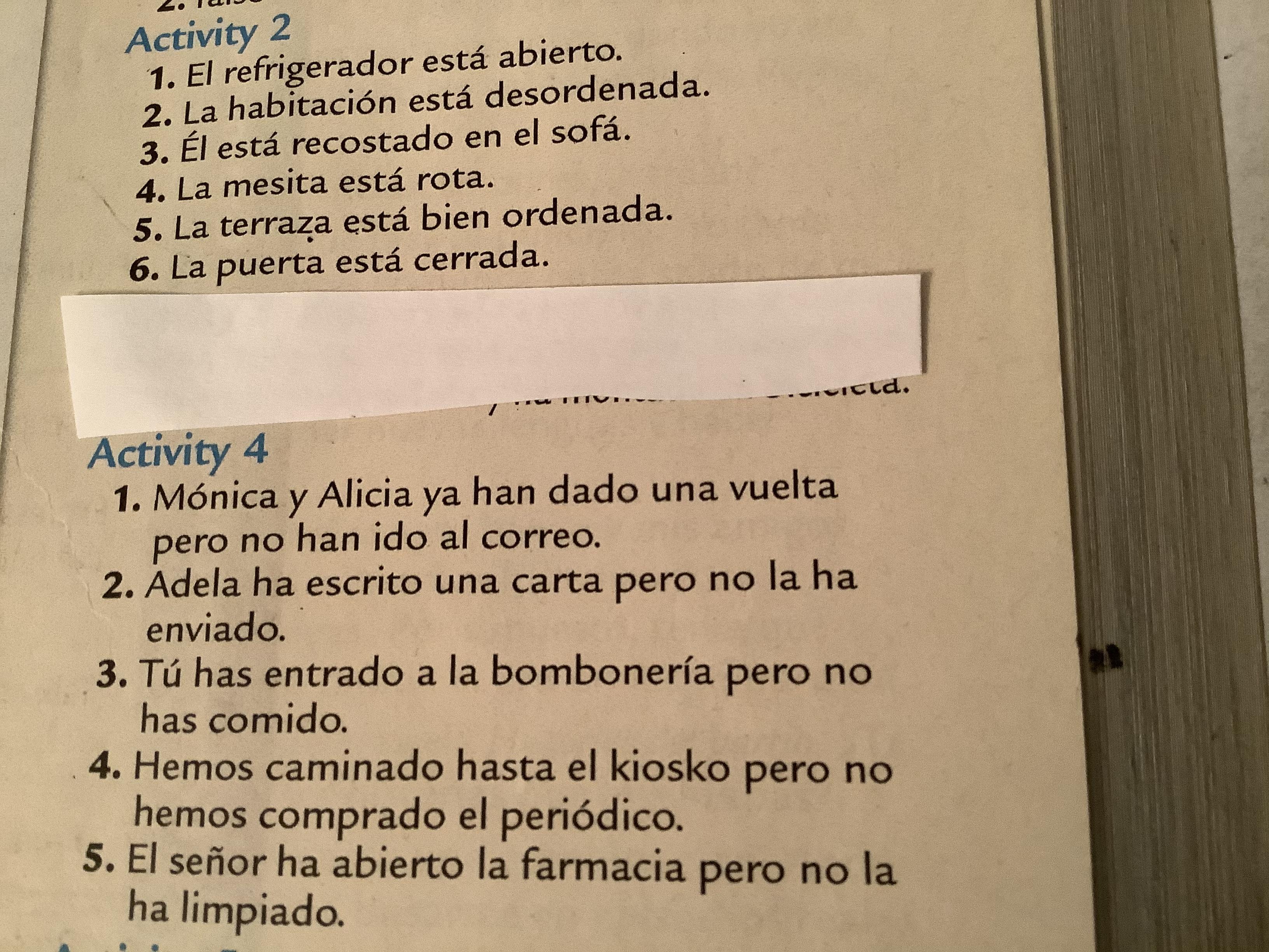 4. Exercises 1-3 (cuaderno) I assigned these exercises when we last met, but with the confusion of the day I didn’t post them online so if you’ve done it, please recheck, and edit as necessary.